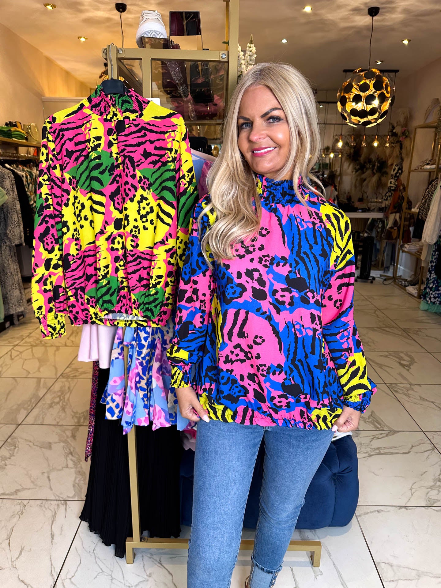 OBSESSING over this gorgeous, bright blouse. This just gives us major girls night out vibes. With our ALBA bracelet and our black FELICITY leather jacket, you are looking FAB for your night out. The colours just make this top pop!