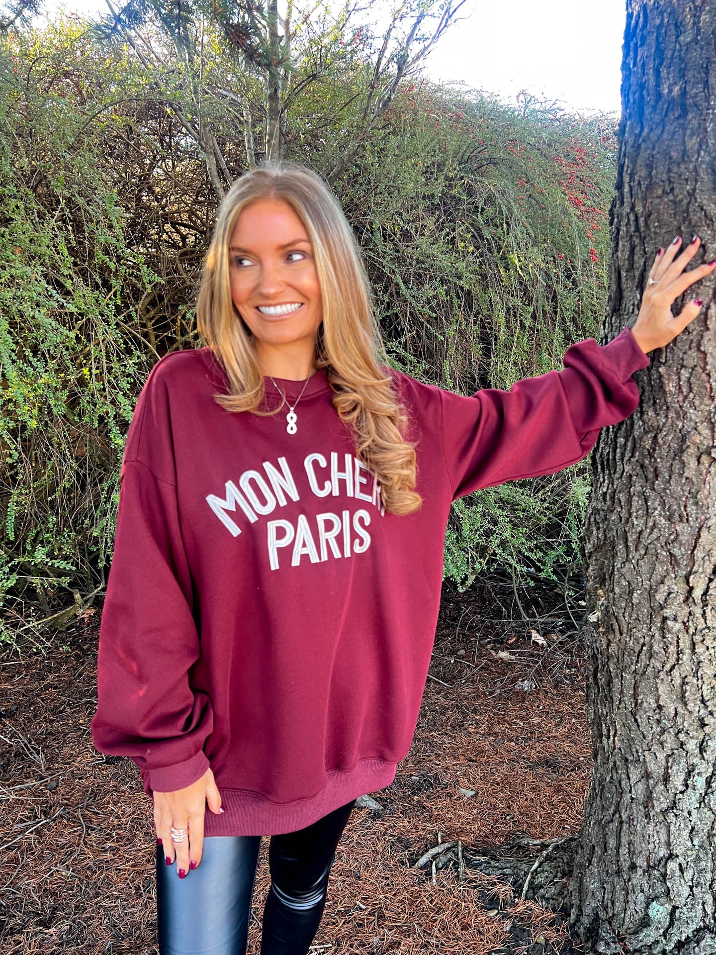The Alyson Sweatshirt is perfect for those chill days. It has an embroidered 'Mon Cheri Paris' logo on the front of the sweatshirt. Pair with The Emma trousers or The Aria joggers for ultimate comfort and style!