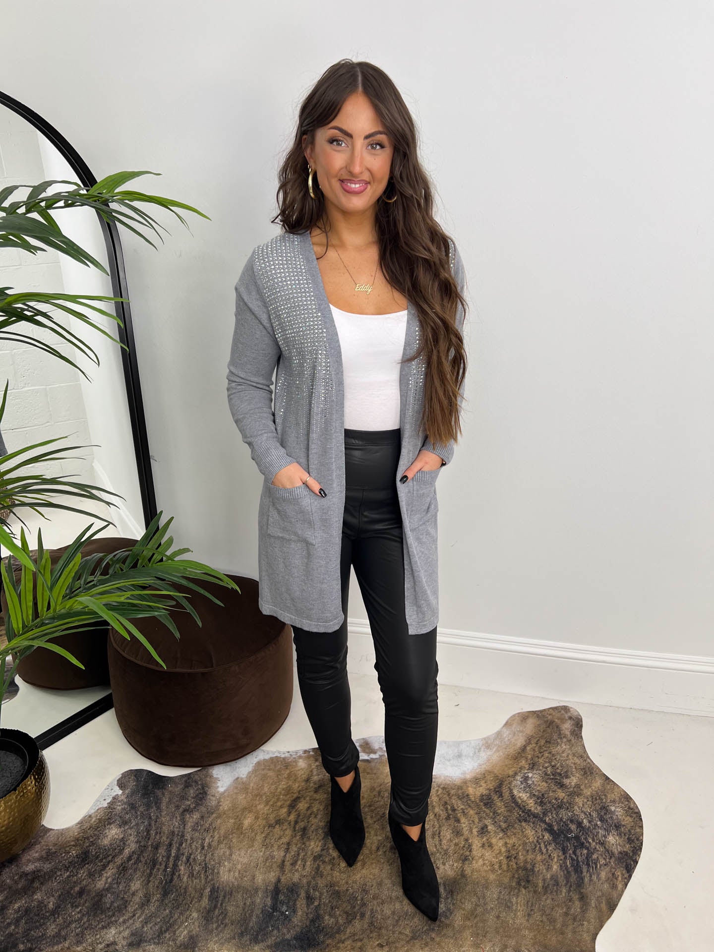 OMG how gorgeous is our Ana Cardigan?! Coming in 2 colours, this knit features 2 front pockets, long sleeves, and diamante detailing across the shoulders and front. Perfect for the A/W season, pair with your fave everyday tee and jeans for a cosy and cute look.