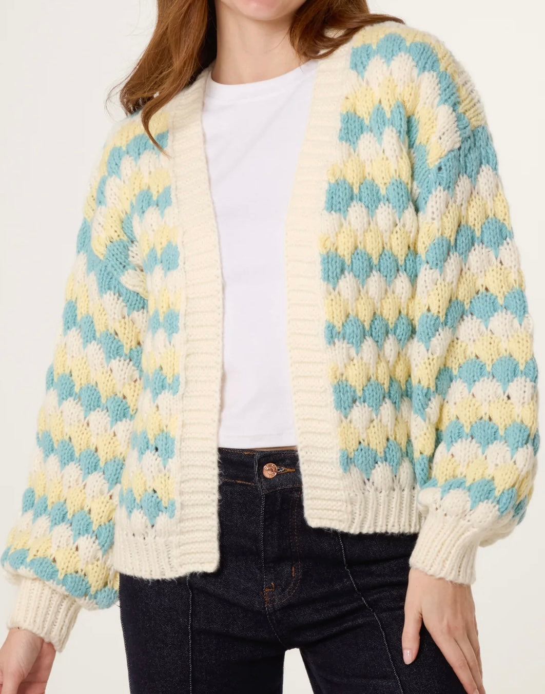 This chunky knit cardigan combines comfort with character, featuring striking blue coral and white colour work that catches the eye. The cream collar, hem, and cuffs add a polished finish that elevates the whole look. Perfect for layering over your favourite basics or wearing solo, The Ava brings warmth and personality to your everyday wardrobe. Snuggle up in texture and colour this season.