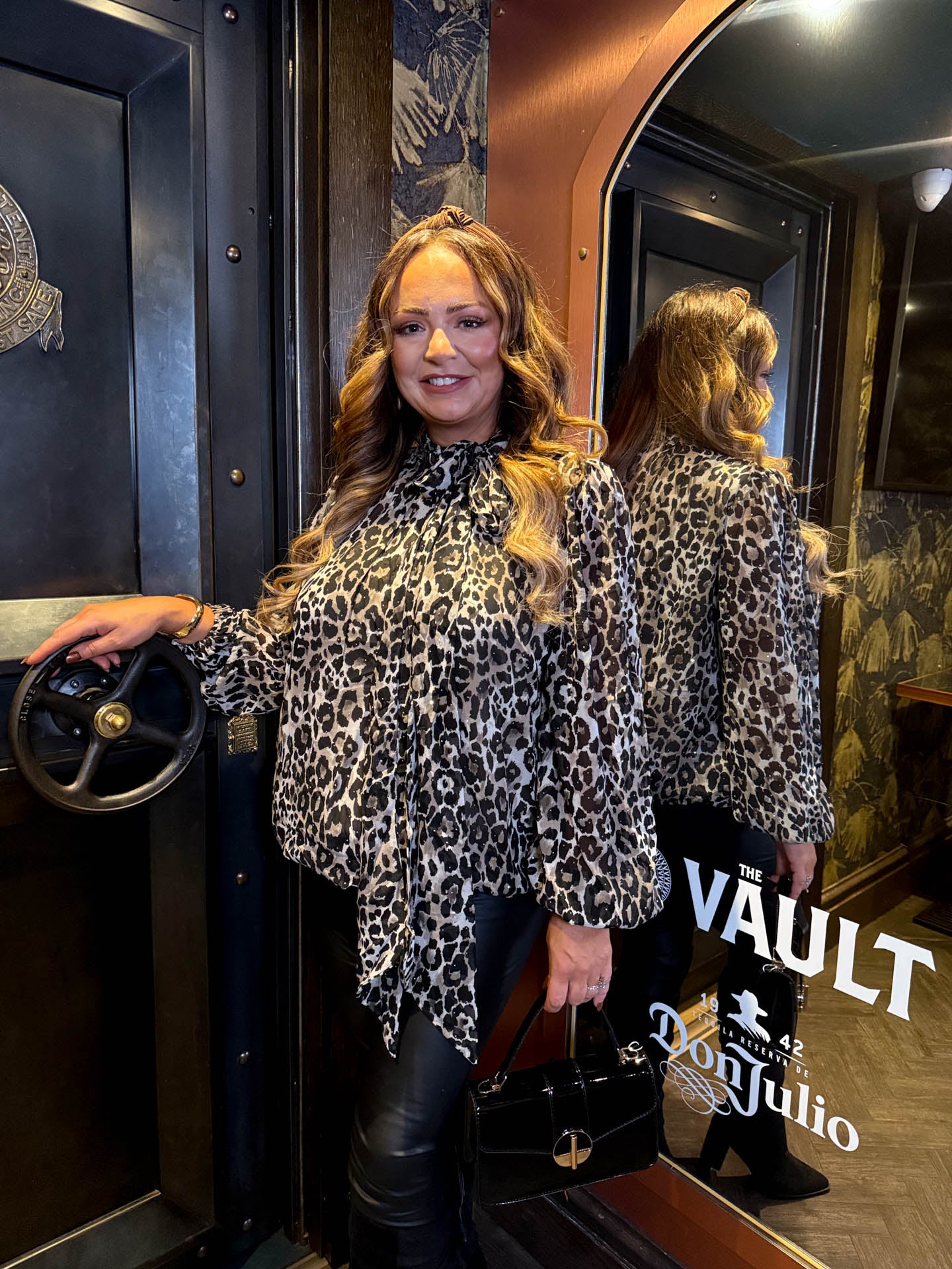 How STUNNING is our new Bethany Blouse?! You ladies have loved our Bethany we just HAD to bring you a new print! With a gorgeous bow tie neck, this blouse is the perfect piece for your next date night. Dress her up with The Yvonne Flares and a pair of boots to complete this look.