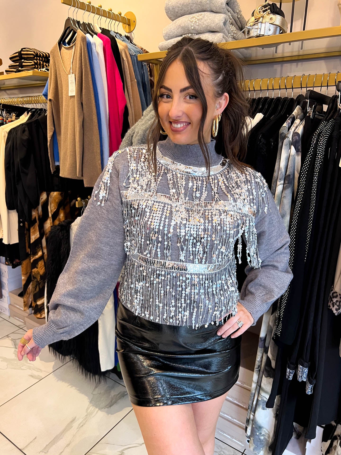 We love our new Bree jumper ! This knit is perfect for adding that bit of SPARKLE into your autumn/winter looks. Style with a pair of leather leggings and our SKYE mules to complete the look!