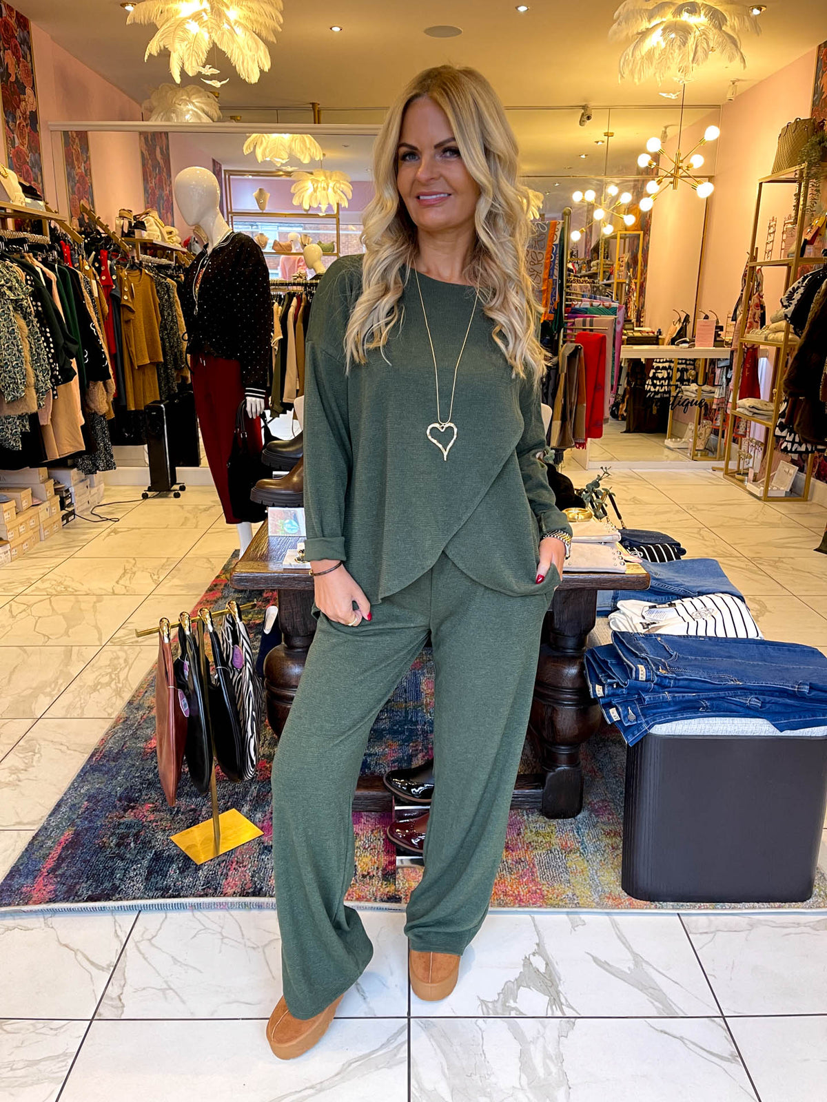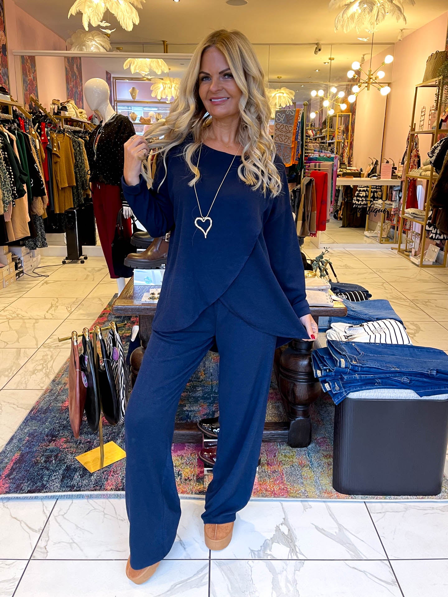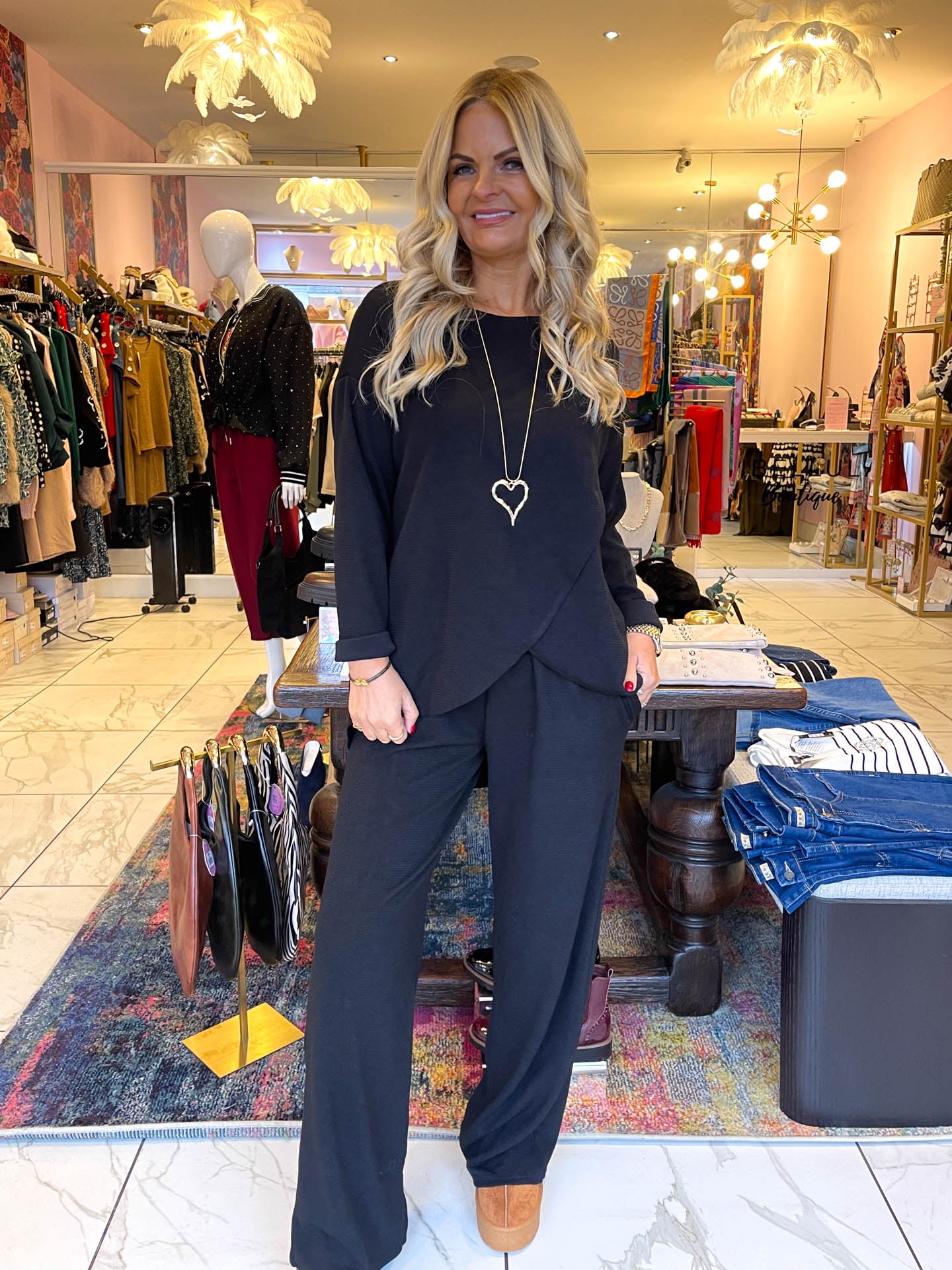 OMG how cute and comfy are our CARLY co-ord sets! We are obsessed with these wide leg trousers and long floaty top, we just love the oversized fit of these as they are super comfy. We have paired these with our mules for a cosy AW look.