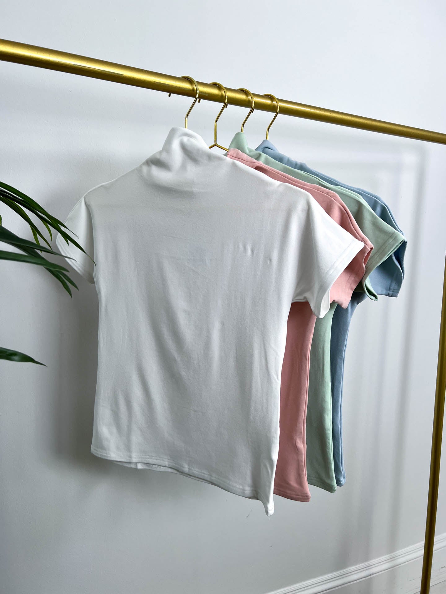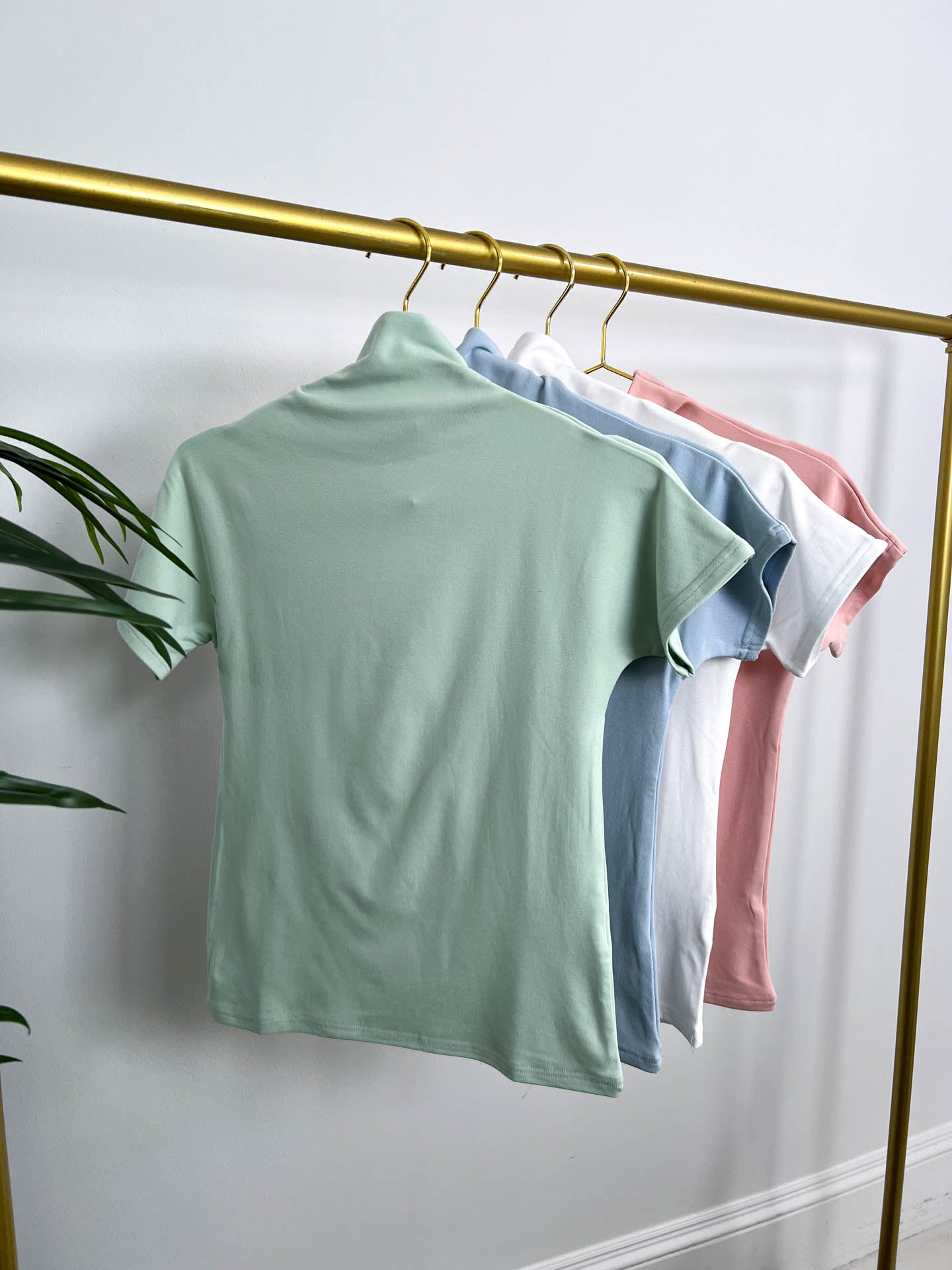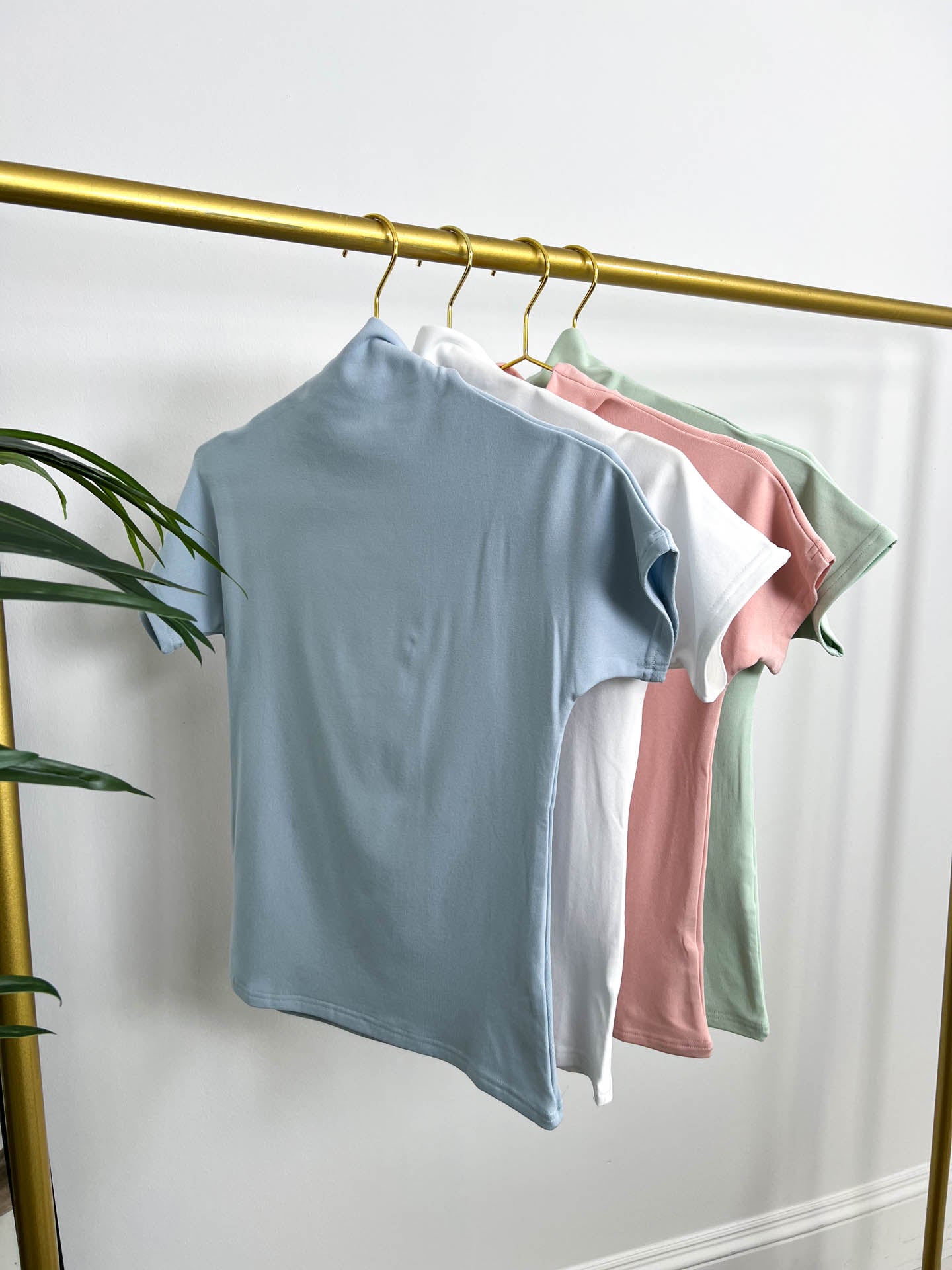 We love a good basic and the Catia is a gorgeous, thick, basic t-shirt that sits mid neck. The quality makes this a little more special than any old t-shirt and we love pairing under our blazers for a day to day look.