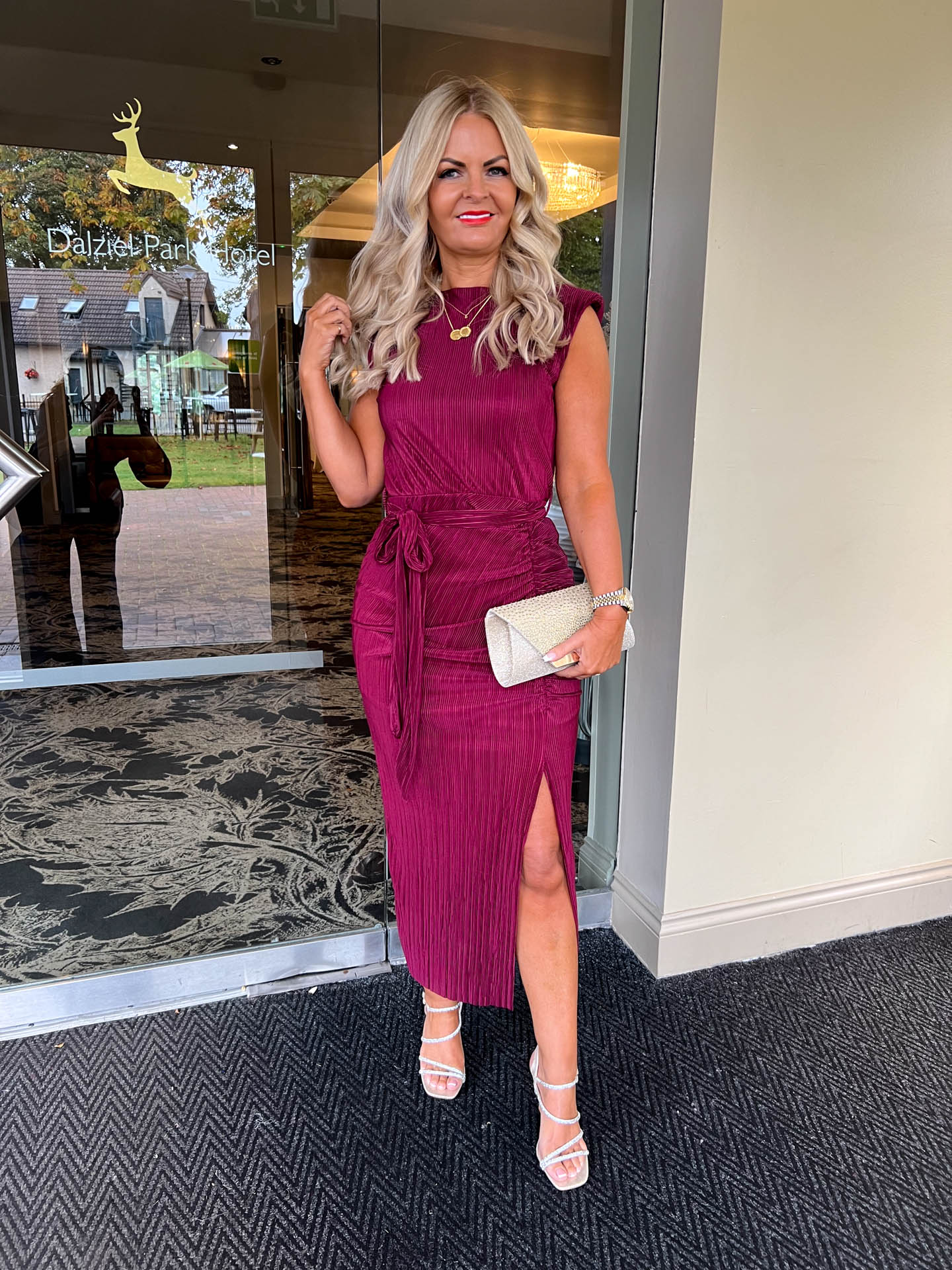 How classy and chic is our Catia maxi dress?! Featuring textured fabric, tieable waits, ruched side detailing and a tight fit to create the perfect silhouette. Style with some heels and a clutch to complete the look.