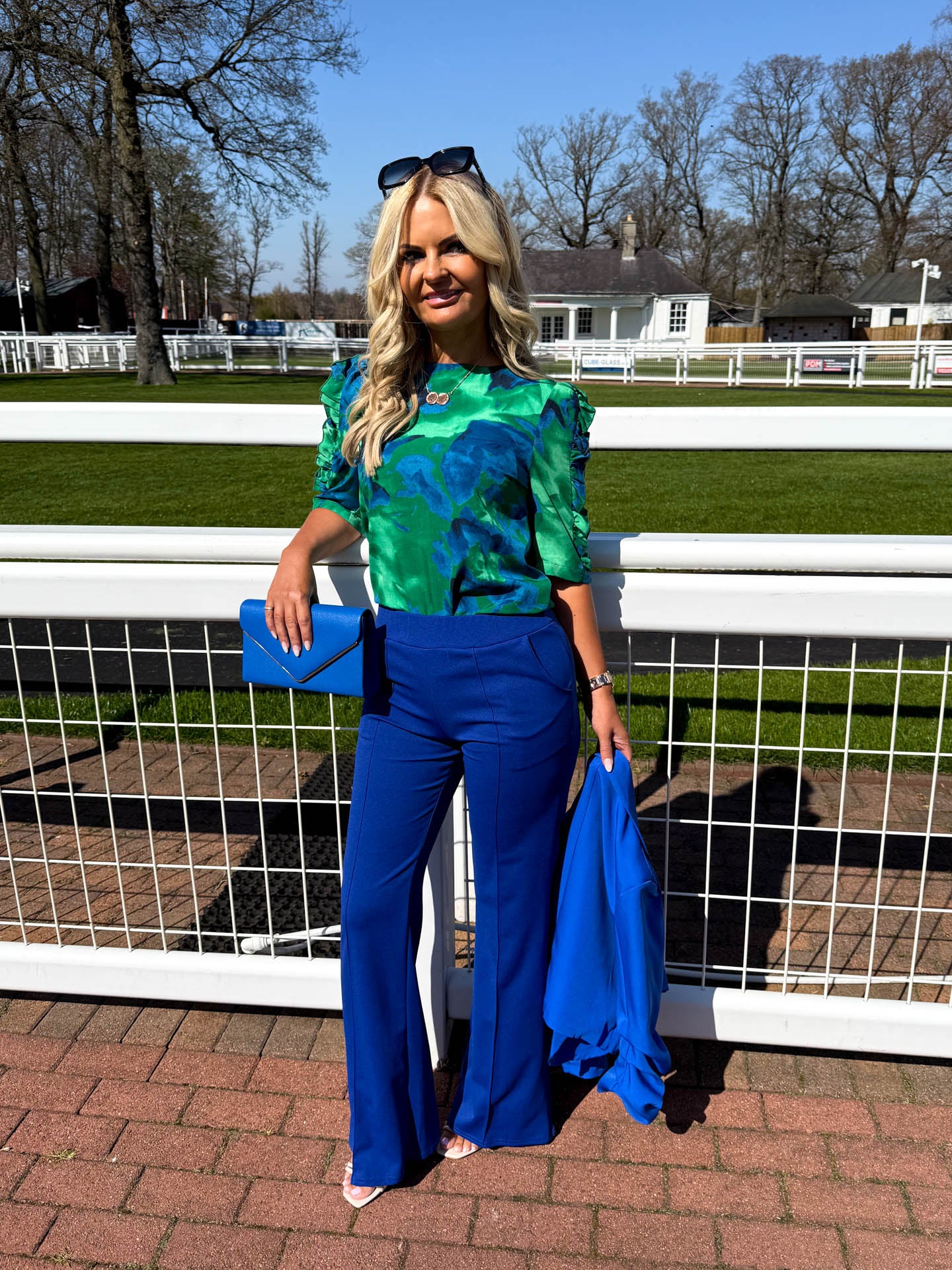 How cute and trendy is our Cerys blue & green floral print blouse?! Featuring a satin feel fabric and frill detailed sleeves. Style with some jeans and trainers to complete the look.