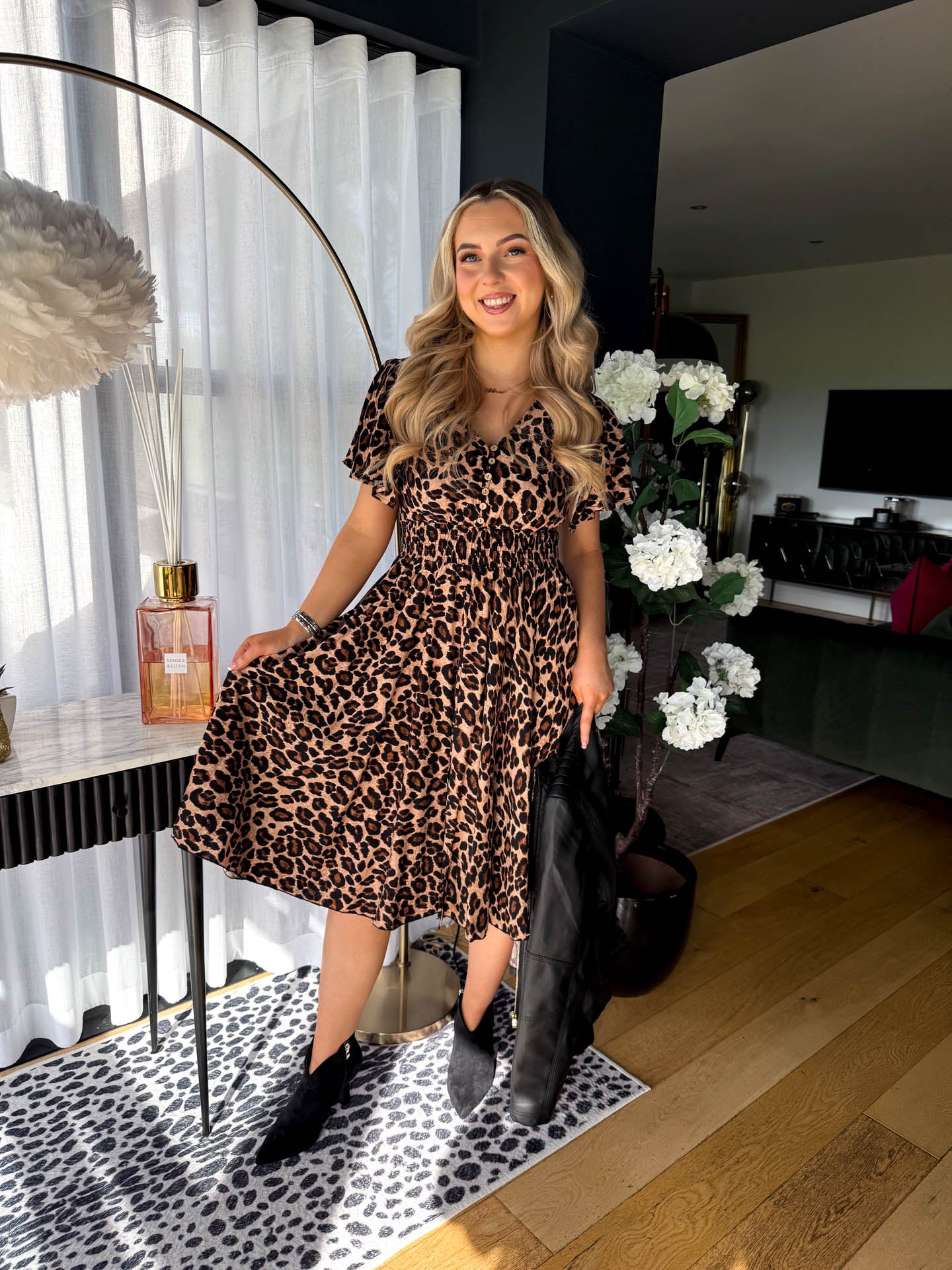 OMG we are obsessed with our Estella Dress! Featuring a stunning leopard print, button detailing and an elasticated waist for ultimate comfort, this dress is perfect for your next girls day! Pair with some boots and our Tylie leather jacket for s gorgeous 'fit.