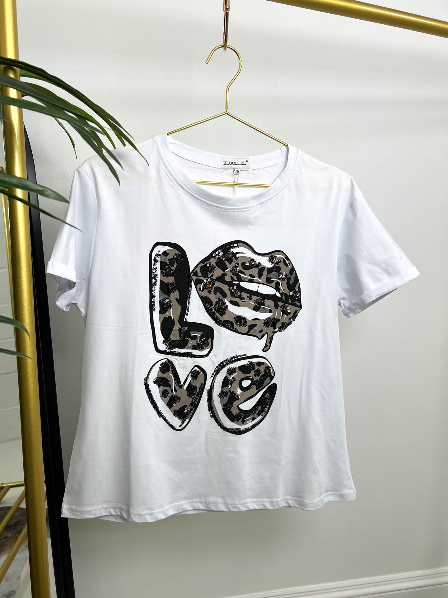 Make a statement with The Faith, a playful short-sleeve tee featuring a cheeky 'LOVE' graphic and a pair of lips. Rendered in eye-catching leopard print, this design brings fun and flirtation to your everyday wardrobe. Perfect for those who love bold, quirky fashion with a touch of sass.