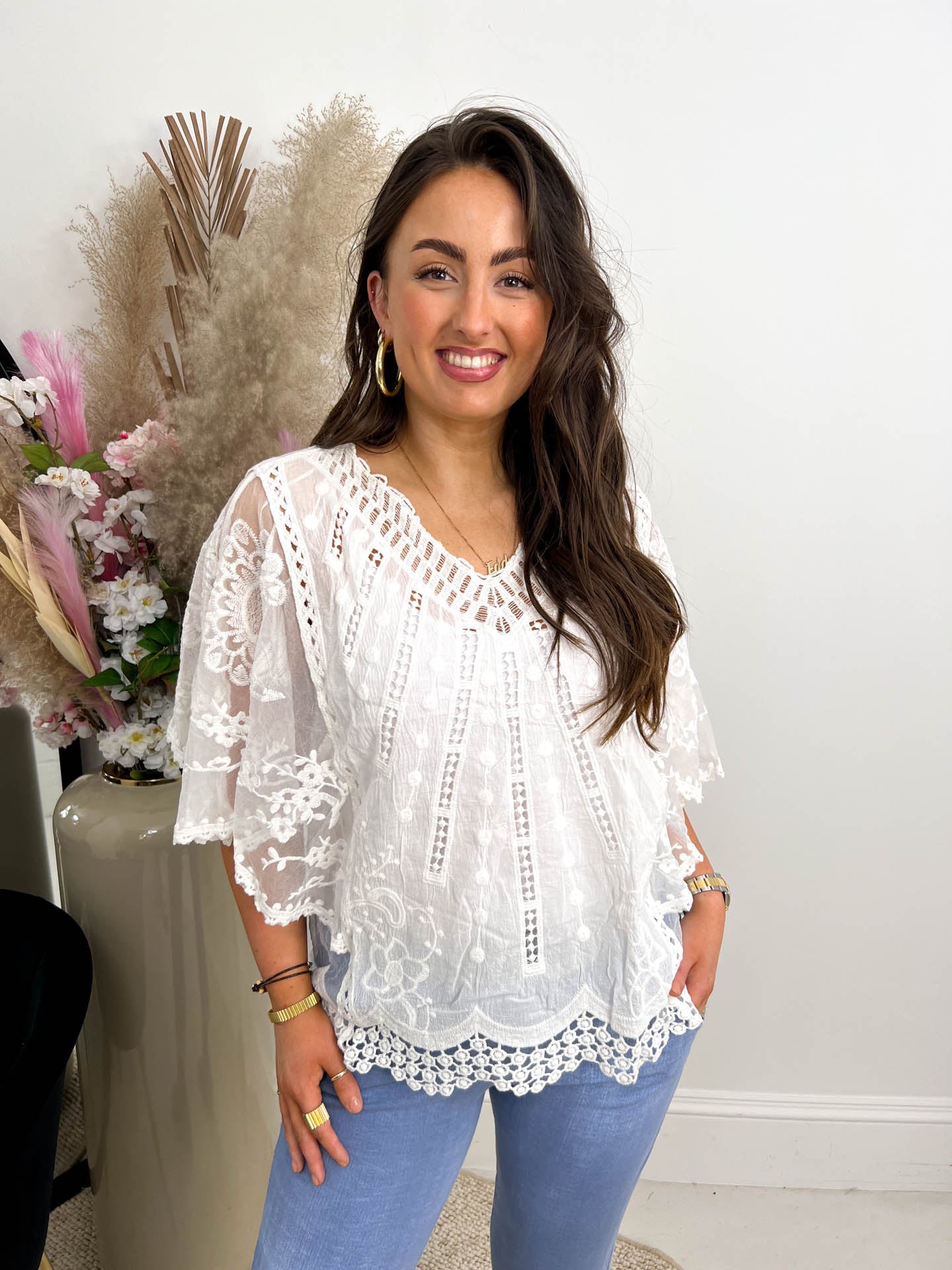 We are loving the Fiona Blouse right now! The embroidered design is so cute! Style with jeans and a pair of wedges for the perfect spring look.