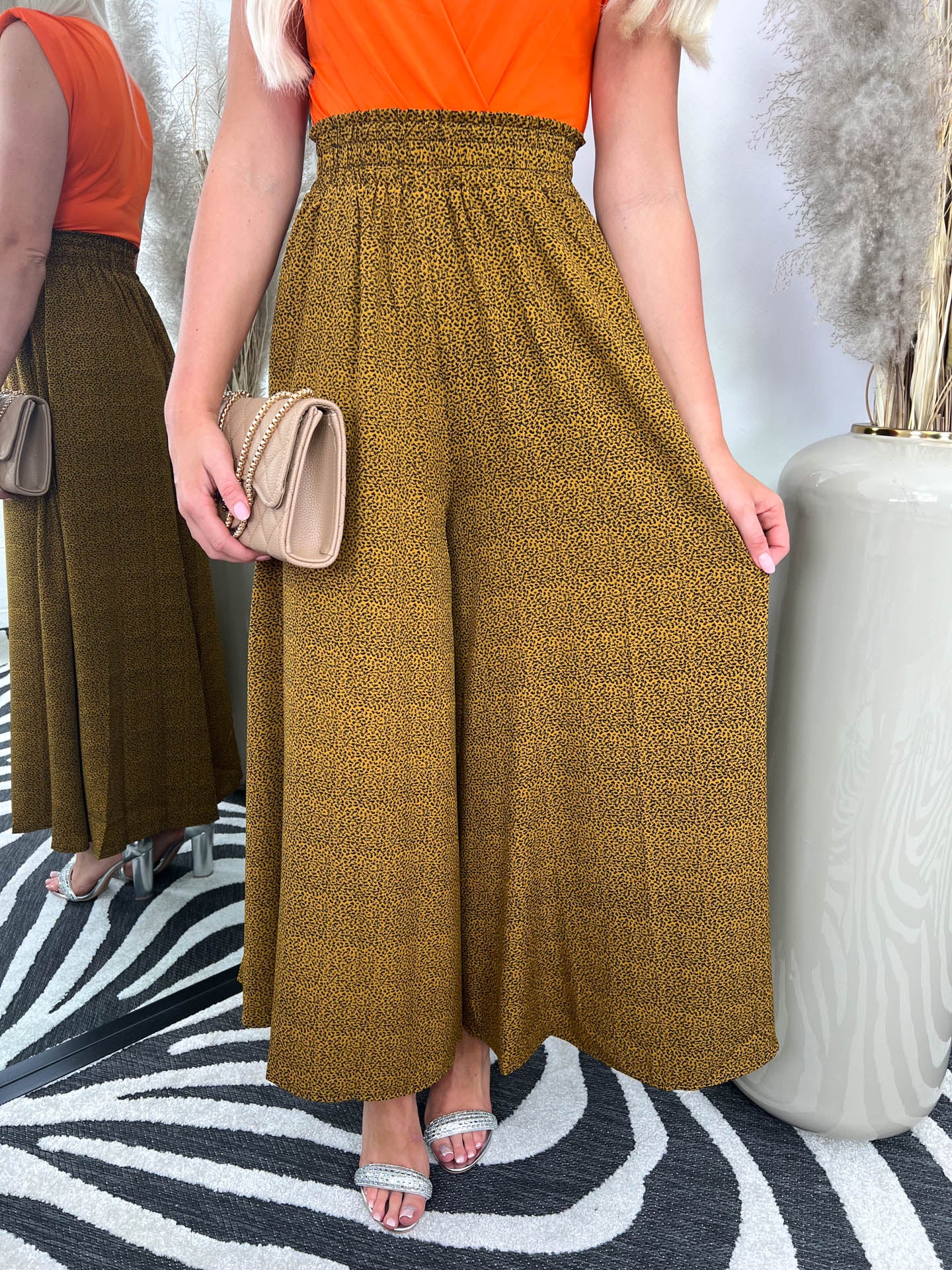 All About MeThese are a wardrobe STAPLE! Elasticated at the waist, floaty palazzo style legs with a timeless leopard print we love everything about the FLO trousers! Super easy to style with versatility to go from comfy daytime casual to elevated glamourous evening wear. We would wear them with our Phoebe Distressed Leather Trainers for a perfect daytime pairing!Fit & SizeThese trousers come in Small, Medium and Large. This ranges from UK size 8-14. Our model is a size 8 and 5ft6 and wears a size S in these trousers.S=8-10M=10-12L=12-14Looking After MeDo not bleach or tumble dry. Iron on low heat. Wash in 30º.
