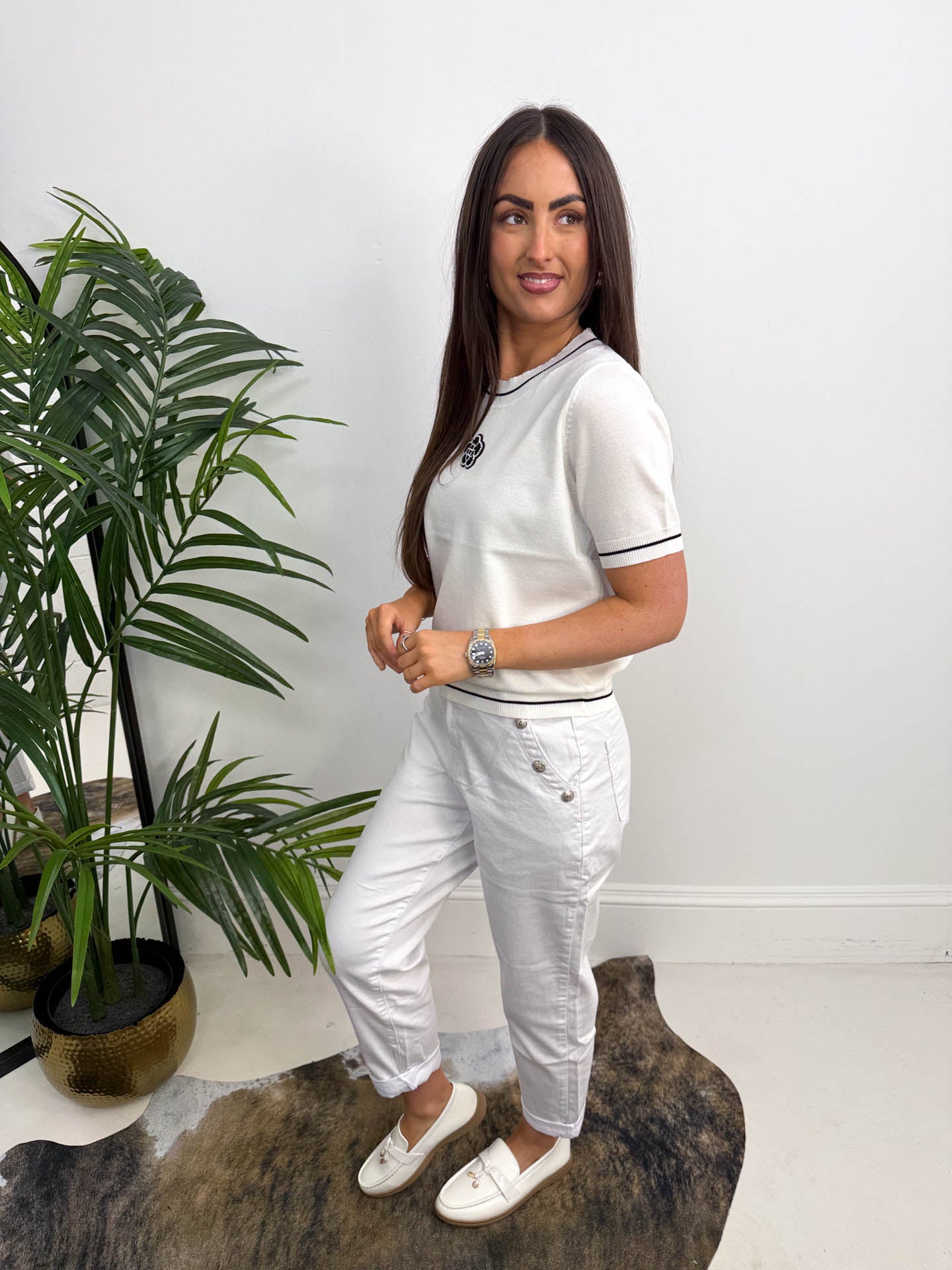 The Hannah is your go-to knit for effortless charm. This short-sleeved beauty features delicate flower beading that catches the eye beautifully, adding a touch of whimsy to everyday outfits. Soft, comfortable, and just the right amount of fancy—perfect for dressing up a casual look or keeping things relaxed with your favourite jeans. A versatile piece that brings joy to your wardrobe.