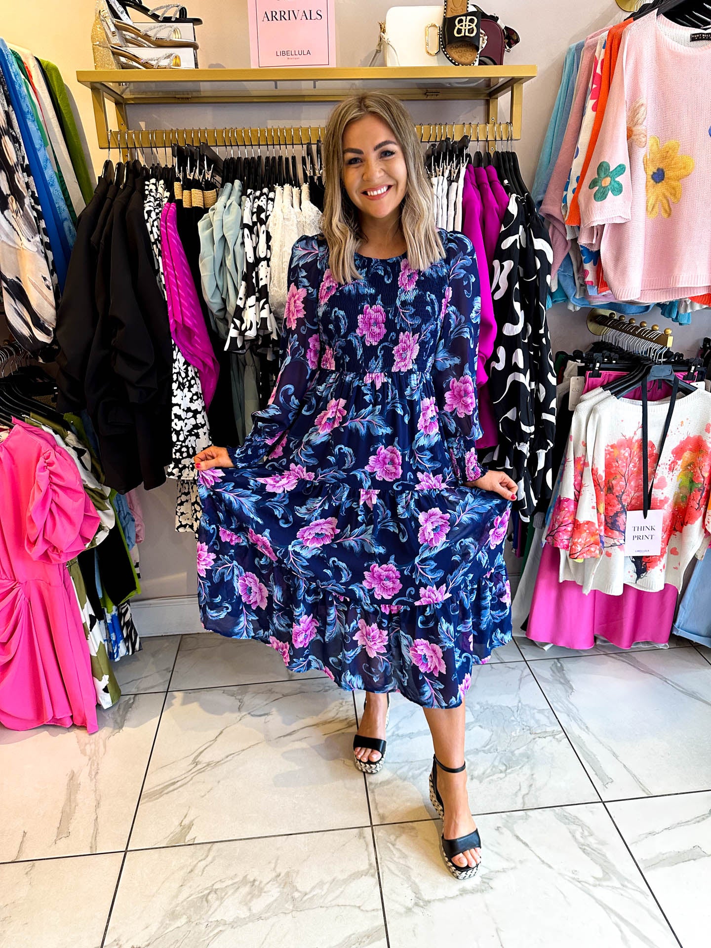 All About Me - The Hope is a gorgeous floral print dress which is perfect for any occasion! It has a lovely ruched detailing across the chest, cuffed balloon sleeves and a curved neckline.