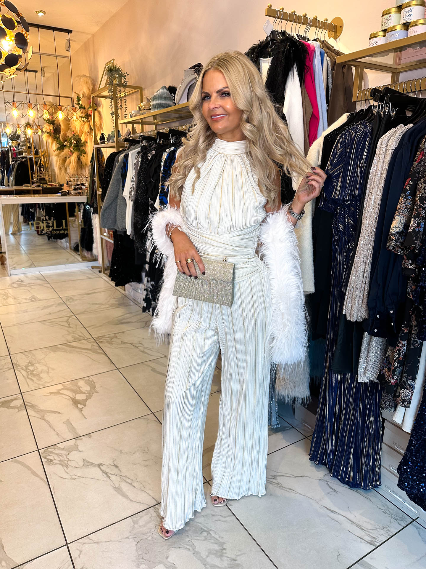 All About Me - The Jada is the perfect occasion jumpsuit. Featuring an elegant fit with a high neck and gorgeous plisse detailing for that extra classy touch. Pair with strappy heels and a clutch.