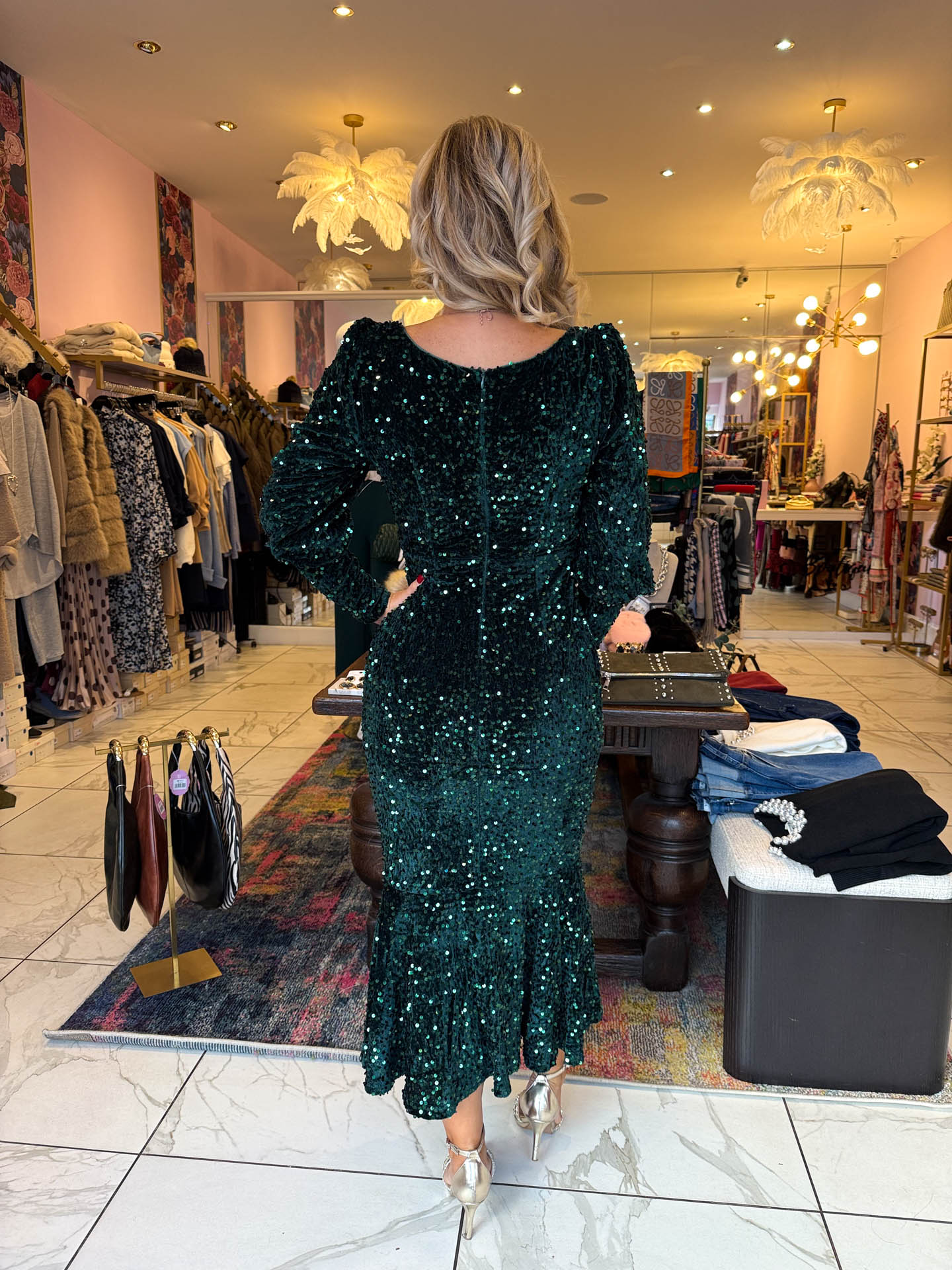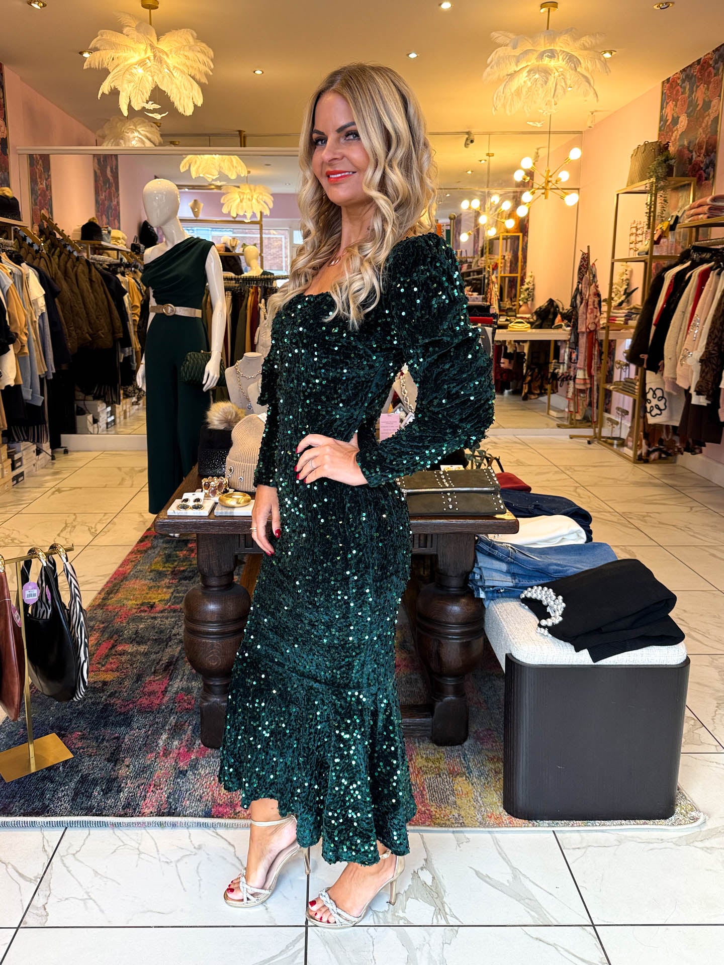 You NEED this dress for the festive period ! Our stunning LUNA is a long sleeved midi dress with stunning sequin detailing. Style with a pair of heels and a clutch bag to complete the look !