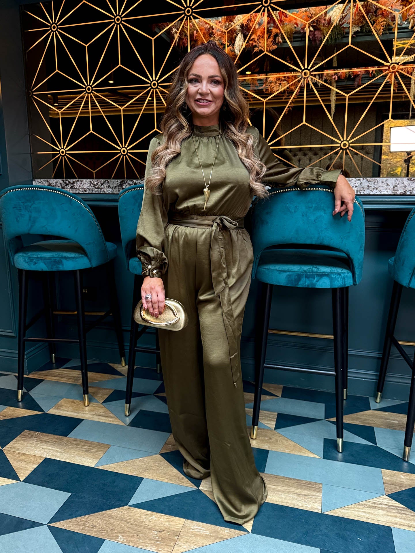 WOW how gorgeous is our Mary Jumpsuit?! Featuring a stunning cut out back, long cuffed sleeves, cinched waist with a tie. This jumpsuit is the perfect occasion-wear piece. Pair with your favourite heels and shoulder bag for a gorgeous look.
