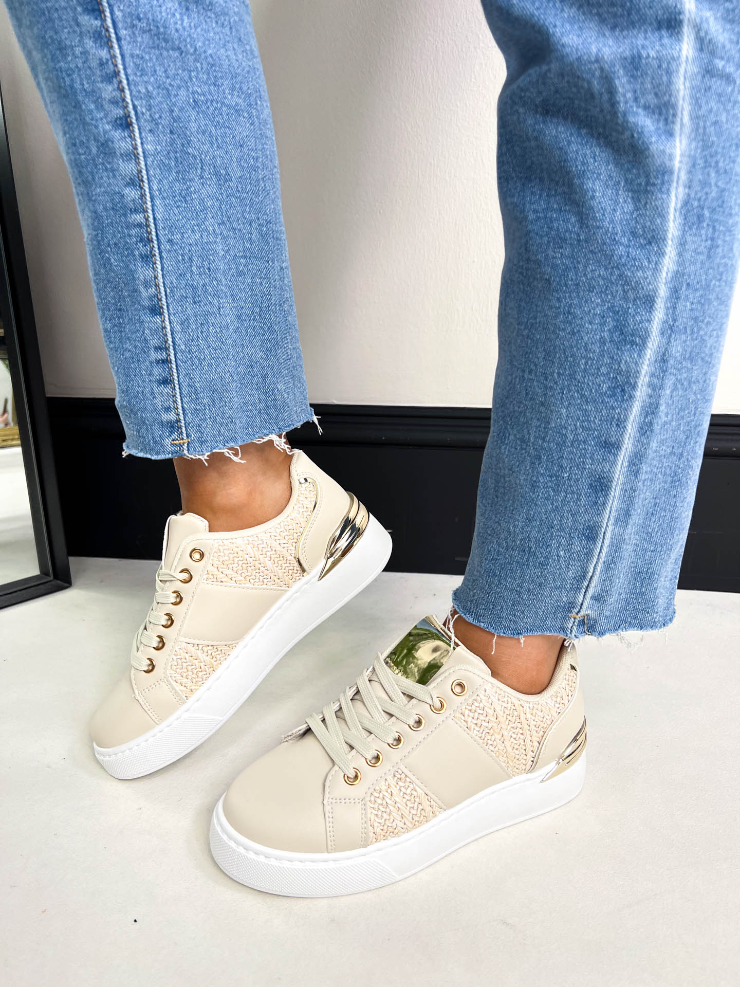 Sometimes you just need that pair of trainers that are that bit more dressier to pair with your cute dresses/skirts. Our MIA trainers are perfect as they have stylish gold detailing and this stunning rattan panelling.