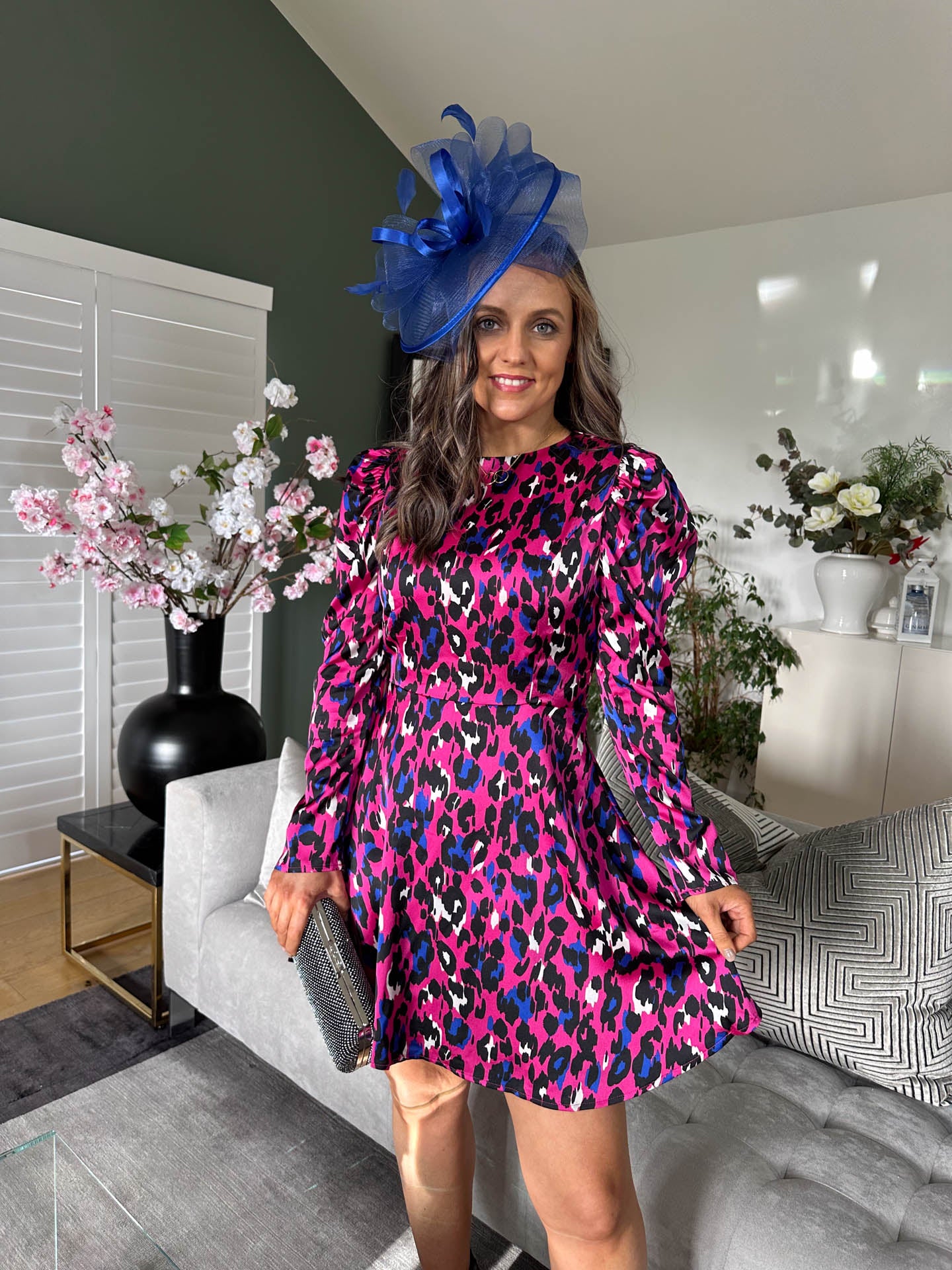 All About Me - A bold contrast to your traditional leopard print, this stylish mini dress features long puff sleeves, a round neckline and zip back. We think this would pair perfectly with our Stella navy bag for that spring and summer look!