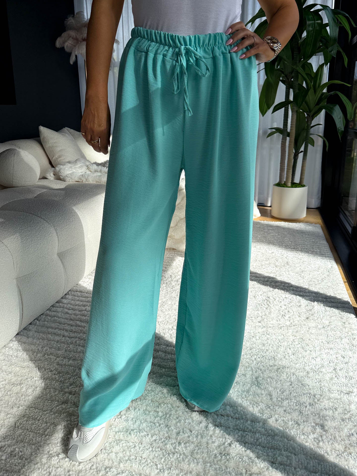 A classic easy wearable pair of tie waist wide leg trousers are such a wardrobe staple! We are obsessed with all these stunning neutral colours and think you need a pair in every single colour. Pair with our HAILEY shirt and ELLA trainers for a easy everyday vibe