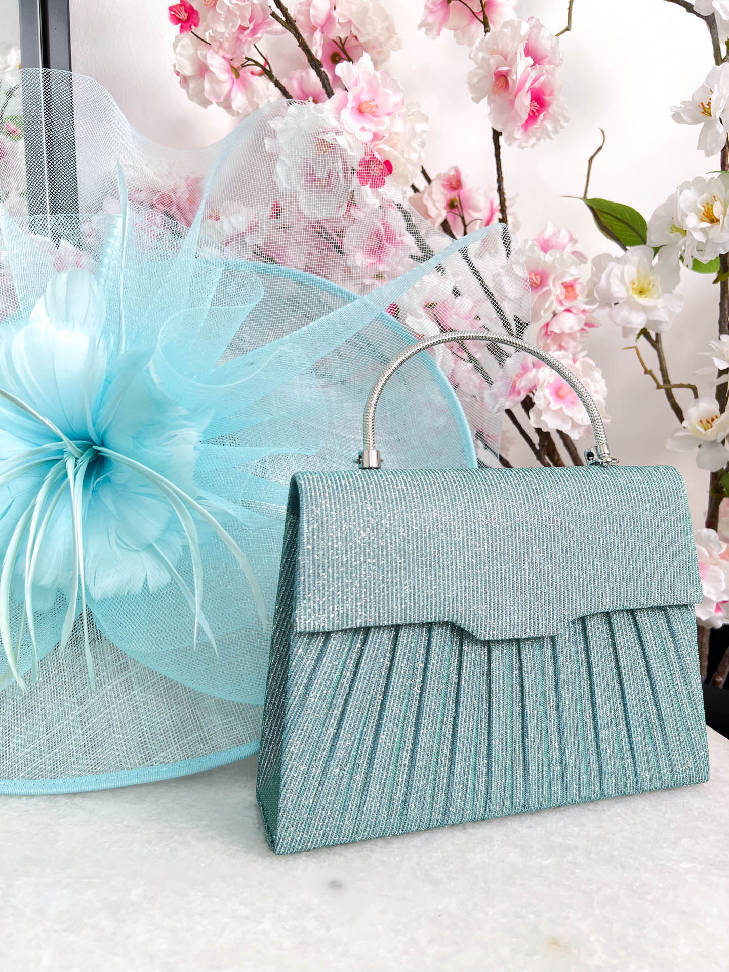Looking for a cute top handle bag to see you through all those summer occasions you have! We have 5 stunning colours to choose from and we love this glittery sparkle effect! This stunning bag has a pleated effected at the front and is plain on the back