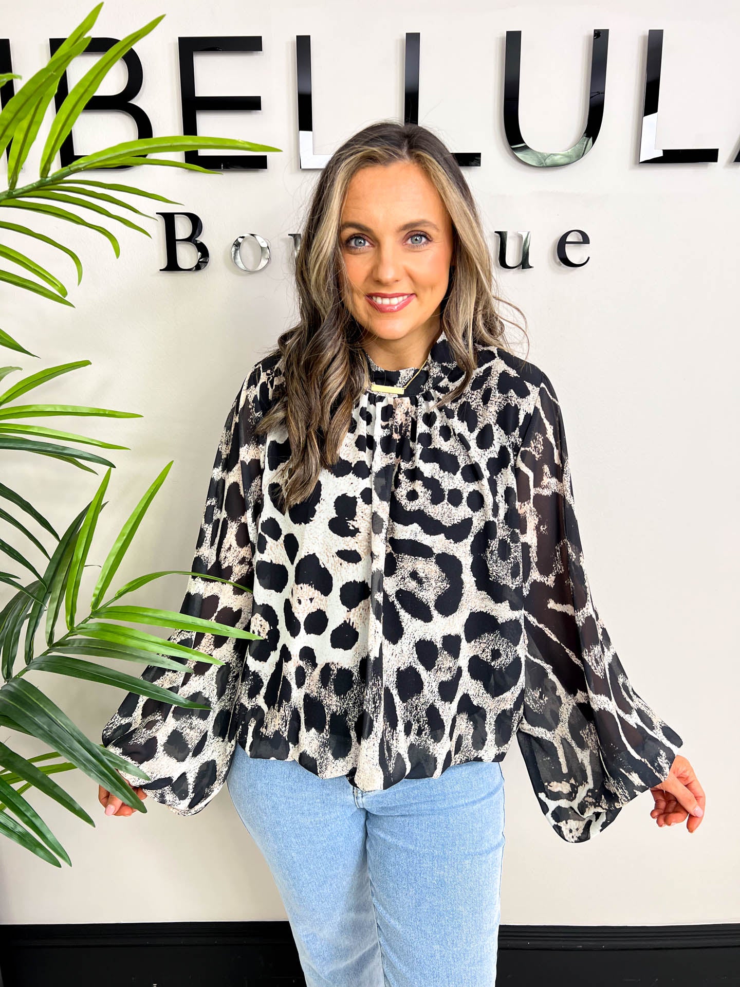 Our stunning OPHELIA blouse is back in a stunning new leopard print and we are obsessed. This stunning blouse has a bubble hem and sits at the perfect flattering point on the waist. With a keyhole fastening at the back it is super easy to get on and off. We would pair this blouse with our The Donna Straight Leg Jeans!