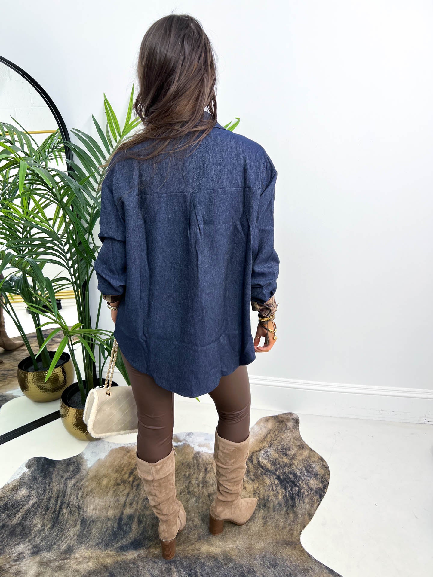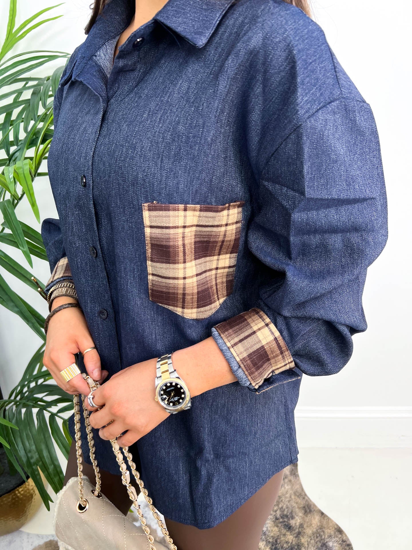 Throw on this oversized denim shirt and let your tartan print pop. The Paisley features a bold tartan print that's anything but boring, paired with practical front pockets perfect for stashing your essentials. Cut generously for that effortlessly cool, relaxed vibe, it's your new go-to for layering or wearing solo. Whether you're channelling countryside chic or urban edge, this denim staple brings personality to any outfit.