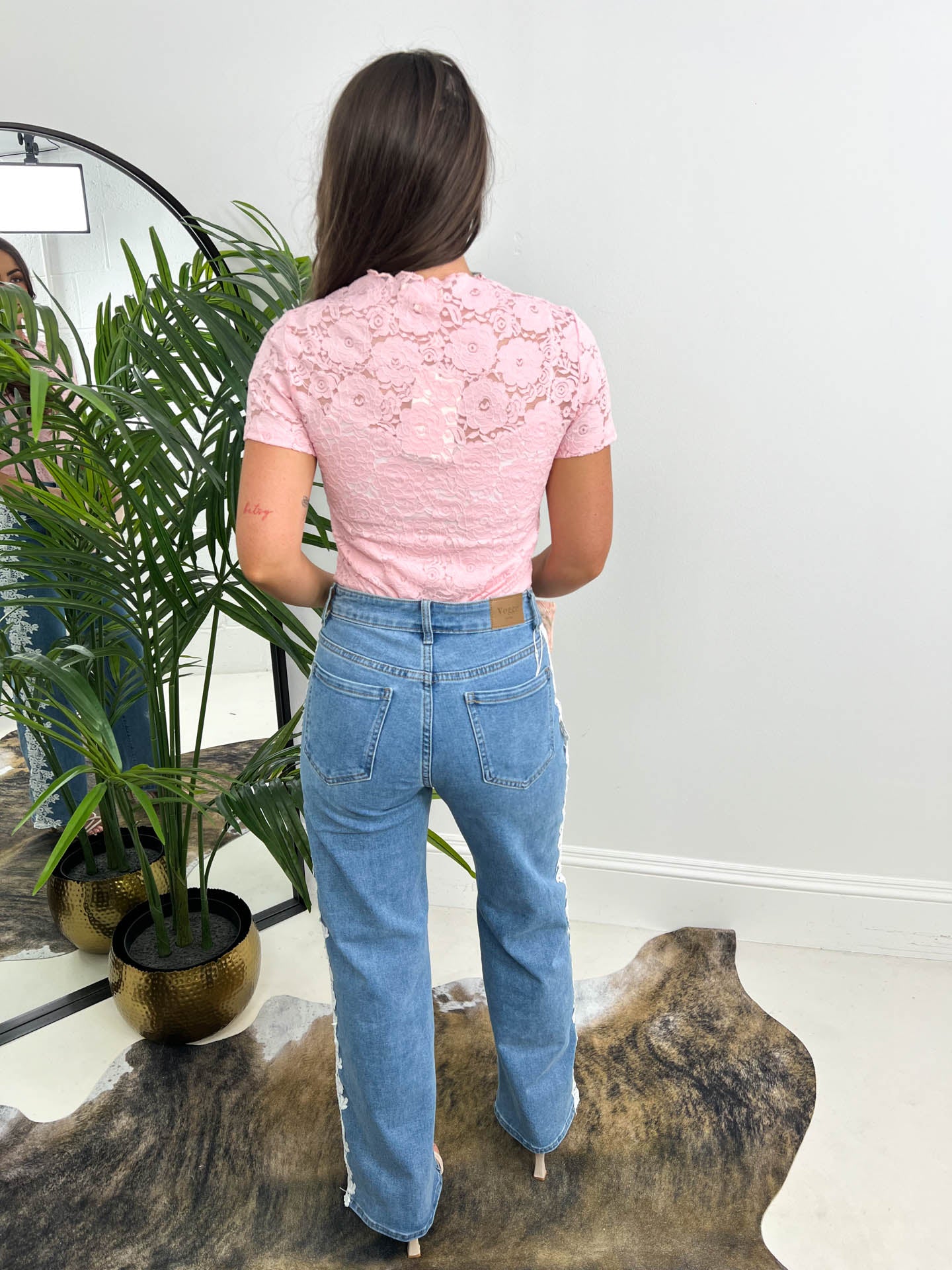 Delicate lace meets floral charm in this enchanting bodysuit. The Posey features intricate floral patterns across lace fabric, creating a romantic silhouette that's equal parts elegant and flirty. Perfect for layering under sheer pieces or wearing solo for a statement moment, this versatile piece transitions effortlessly from day to night. Slip it on and let your inner bloom shine through.