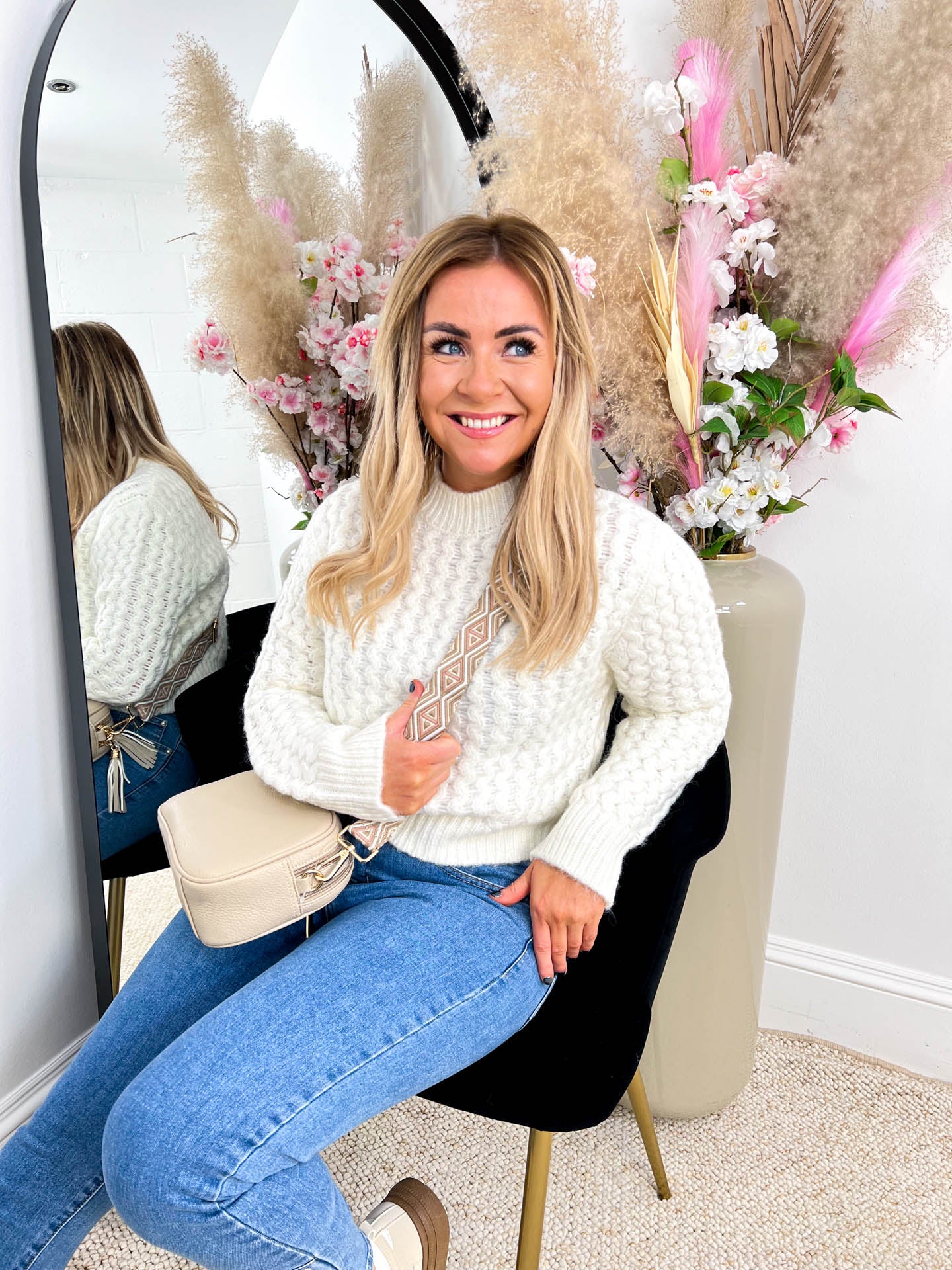 How cosy does our Rowan Knit Jumper look?! Featuring a zig zag print, this is the PERFECT knit for a cutesy girls lunch outfit, pair with our Mona Trousers to complete this look.