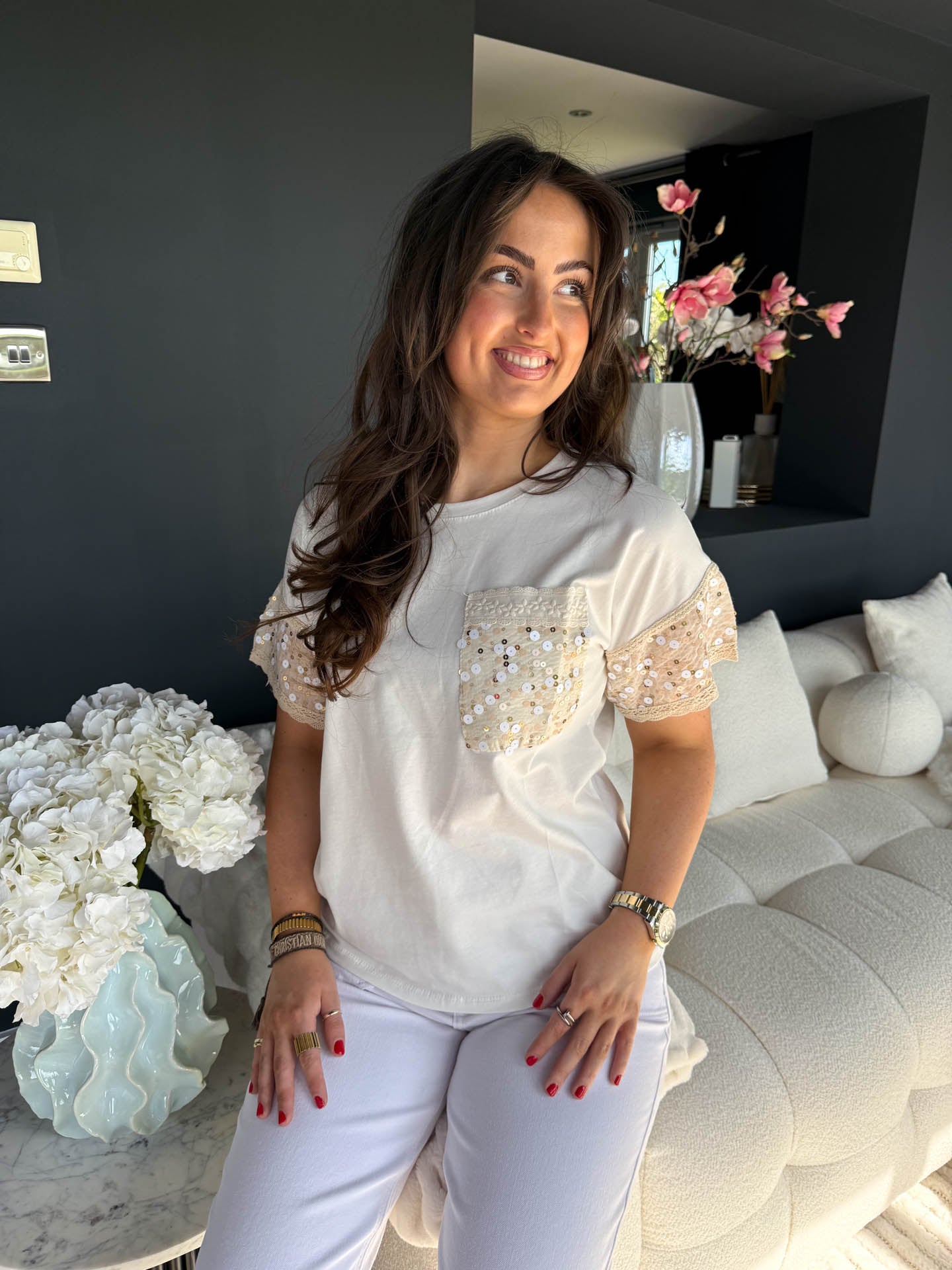 OMG how cute is our Sasha T-Shirt?! Featuring stunning sequin sleeve and pocket detailing, this takes your everyday tee to the next level. Pair with some jeans for the perfect shopping trip 'fit.