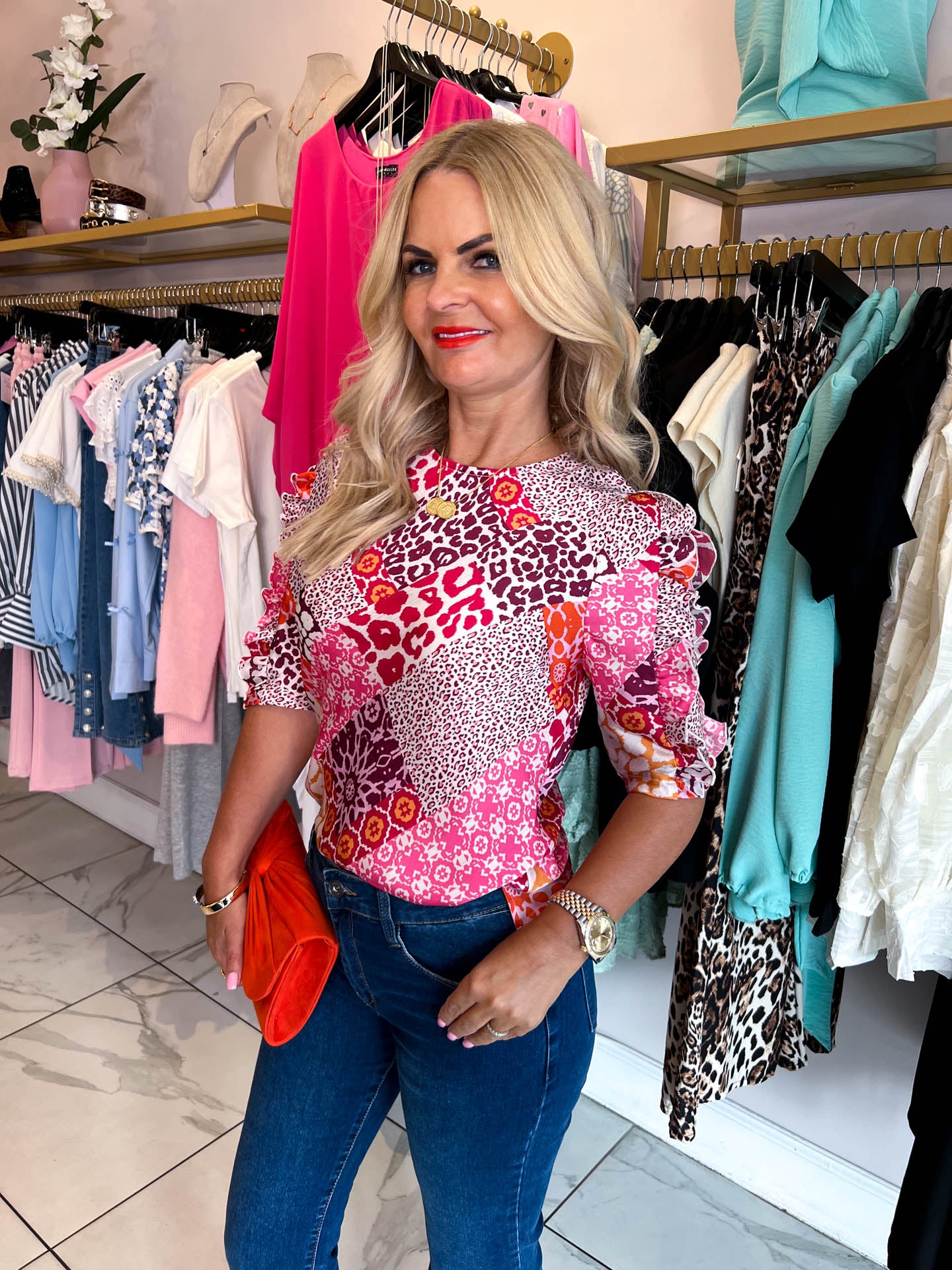How cute and trendy is our Cerys Pink Multi Print Blouse?! Featuring a satin feel fabric and frill detailed sleeves. Style with some jeans and trainers to complete the look.