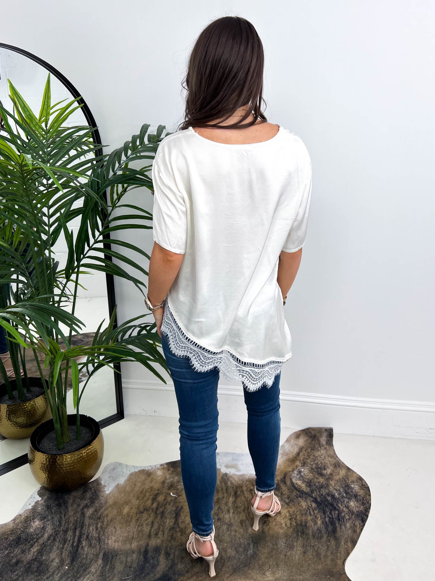 Introducing The Tisha – where elegance meets a touch of class. This satin lace blouse is your secret weapon for effortless sophistication. The luxurious satin drapes beautifully, while delicate lace detailing adds an unexpected flourish of femininity. Perfect for dressing up your everyday look or stealing the spotlight at special occasions, The Tisha transitions seamlessly from office to evening. Slip it on and feel instantly polished, confident, and undeniably fabulous.