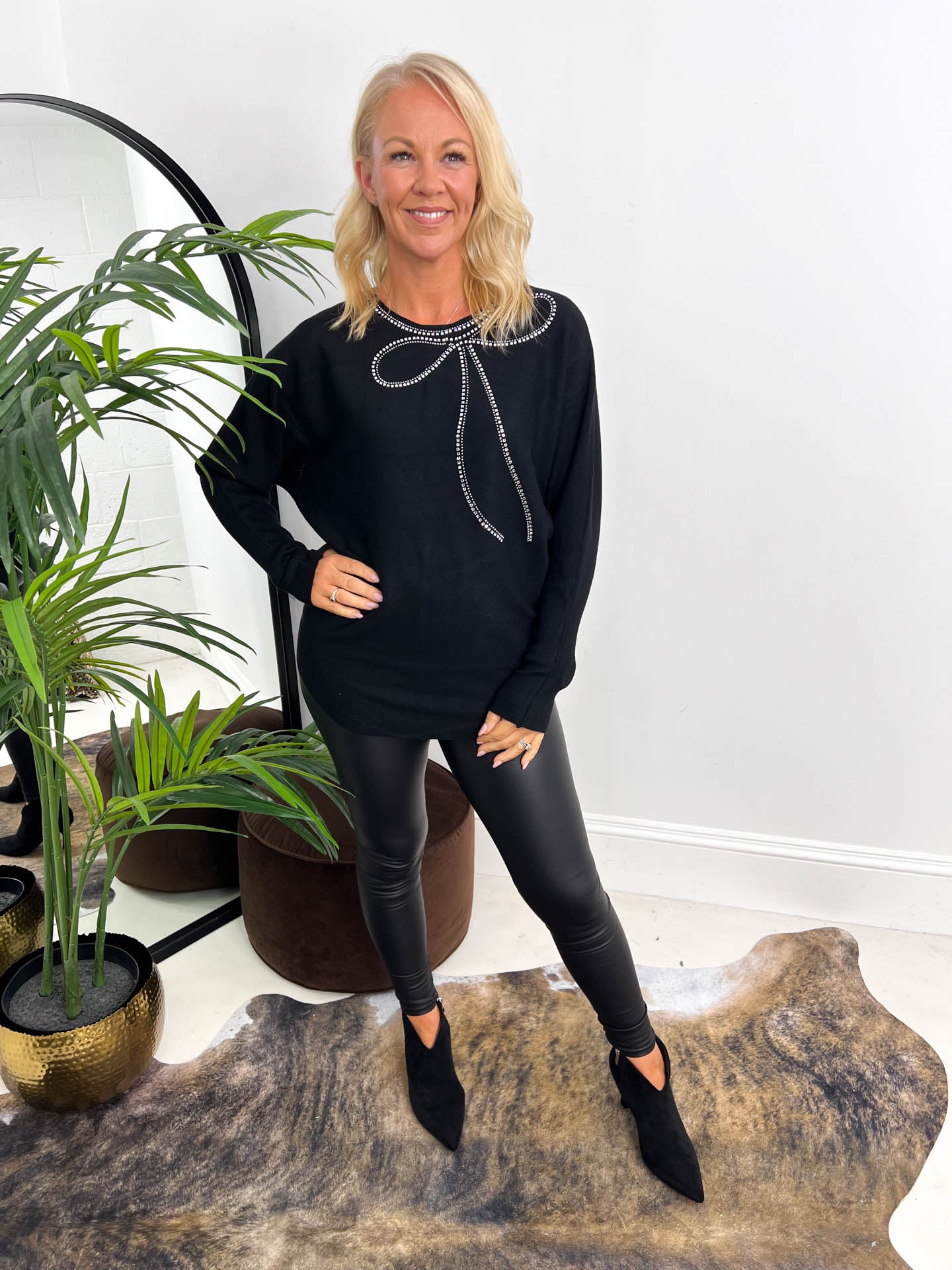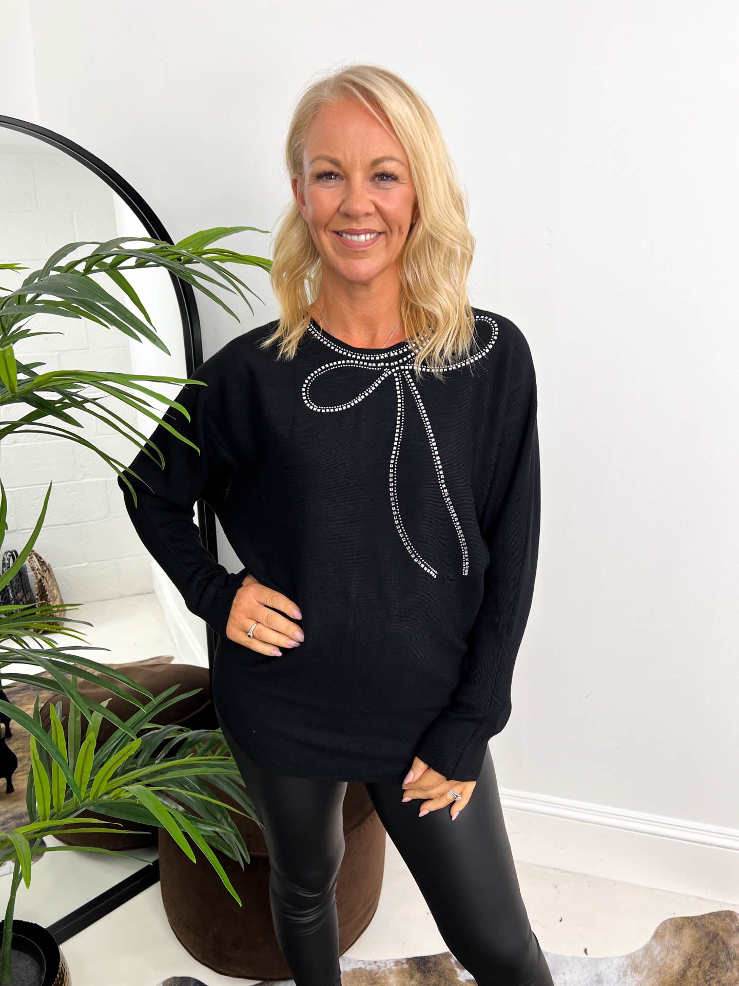 OMG how cute is our Trinity Knit?! Coming in 2 stunning colours, black & ivory, this knit features a diamante collar and large bow, with an oversized fit and long sleeves. Pair with leggings and trainers for a cosy everyday look.
