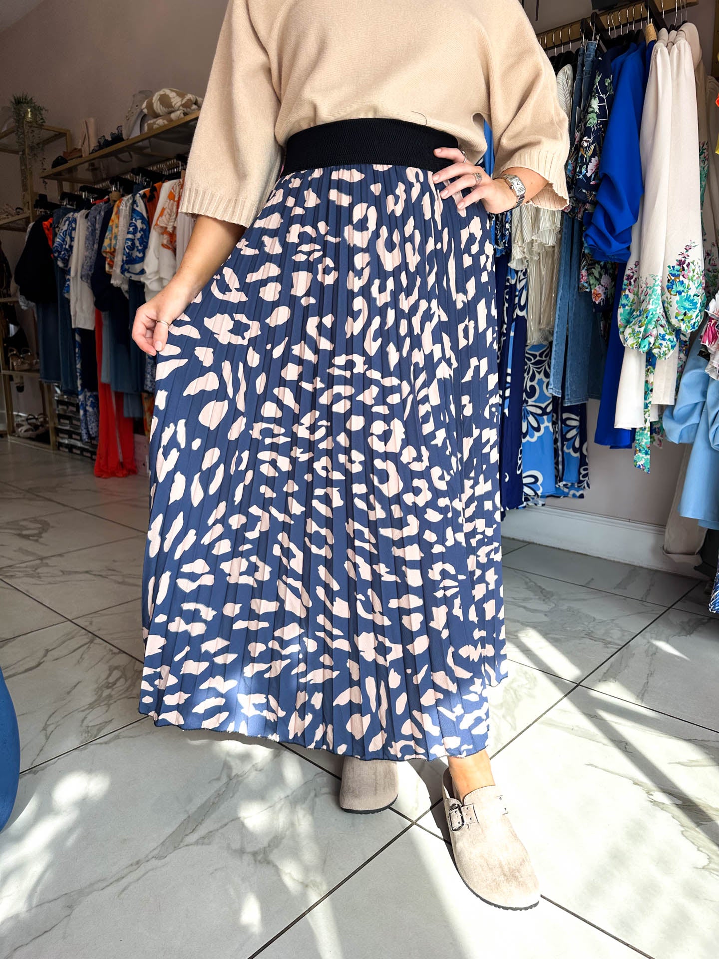 Make a statement with our Valeria maxi skirt! Featuring a pleated fabric with a leopard print pattern and elasticated skirt.