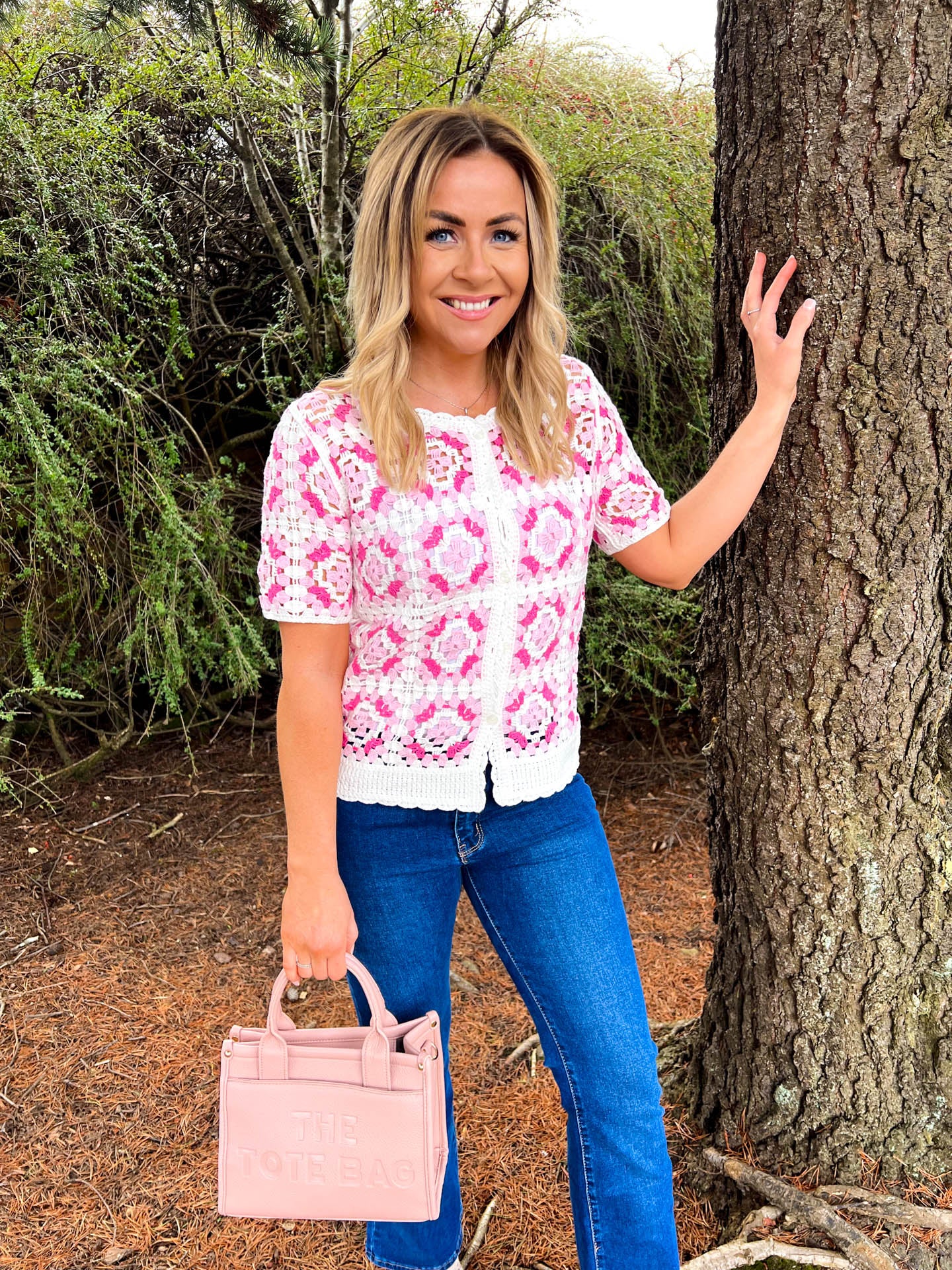 How GORGEOUS is our Veronica Cardigan?! With button detailing and a cute crotchet design, this cardigan is perfect to dress up or down! Pair with our Tammi jeans for a casual but cute outfit.