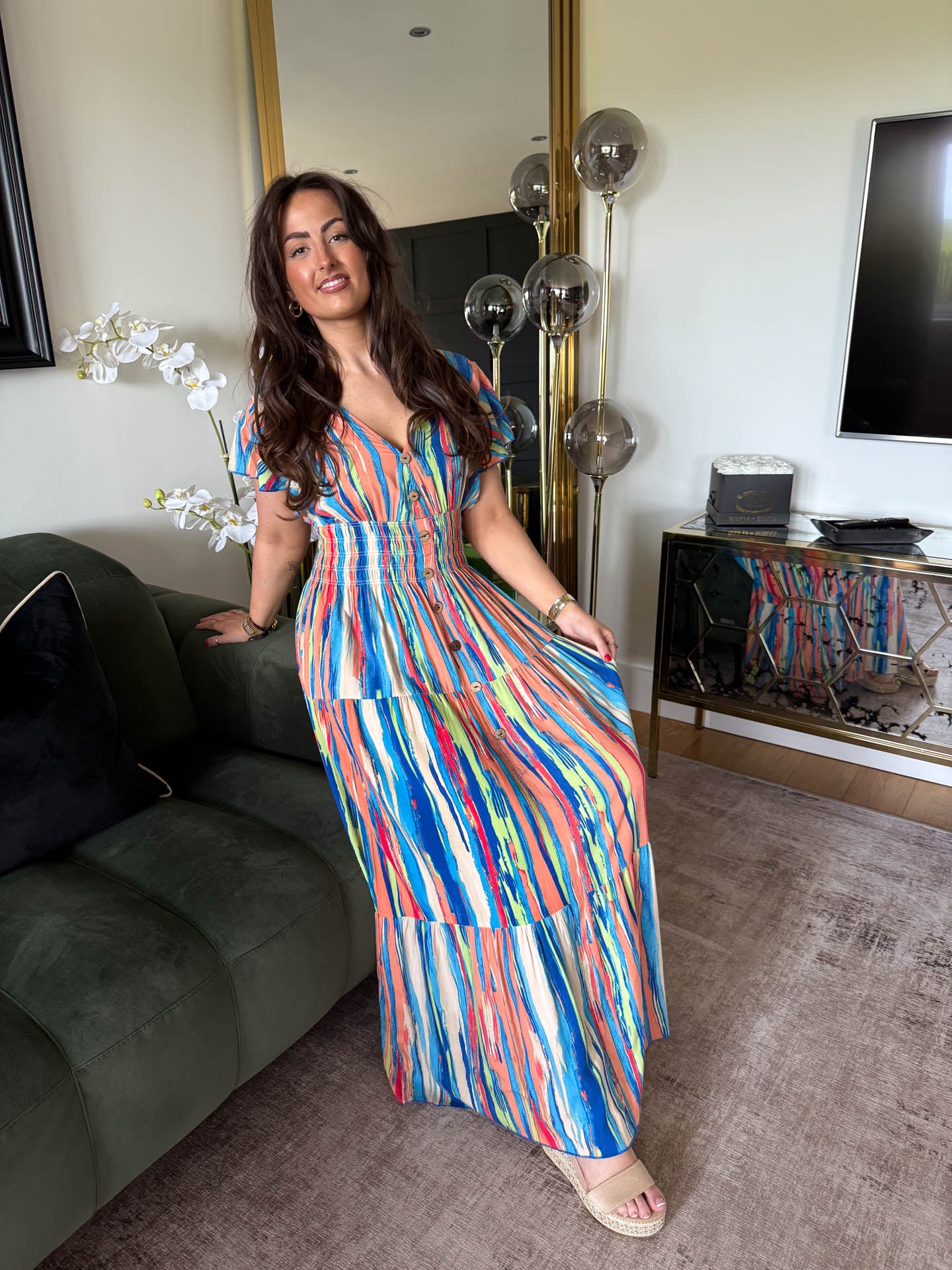 WOW we are obsessed with our Victoria Midi Dress! Featuring a button down design, V-neck and elasticated waist, this is a MUST-HAVE this Spring/Summer! Pair with some wedges to create a gorgeous 'fit.